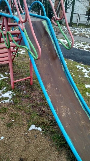 На детской площадке, прилегающей к дому по адресу Притыцкого, 92, крайне плачевная ситуация. Песочница постоянно загажена собачьими экскрементами, так как несмотря на недавно построенный выгул, многие владельцы собак считают своим долгом выгуливать и давать испражняться своим питомцам именно на детской площадке. Причём сама песочница уже давно потеряла свои очертания и находится в плохом состоянии. Горка заржавела, кататься детям на ней невозможно. Некоторые жители указанного дома неоднократно подходили в ЖЭС и просили как-то исправить ситуацию. Ответ был таков: «На вашей площадке всё в порядке и там всего достаточно». Никаких действий предпринято не было.