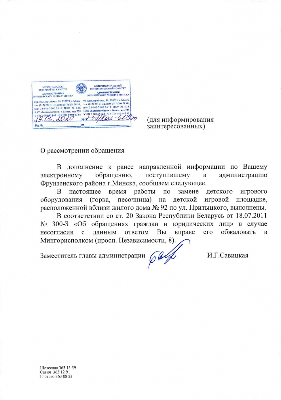 Поэтому мы, жители дома по адресу Притыцкого, 92, и иные граждане, убедительно просим Вас заменить горку на новую и установить на детской площадке закрывающиеся песочницы, чтобы дети летом могли нормально в них играть, а не перебирать собачьи экскременты.