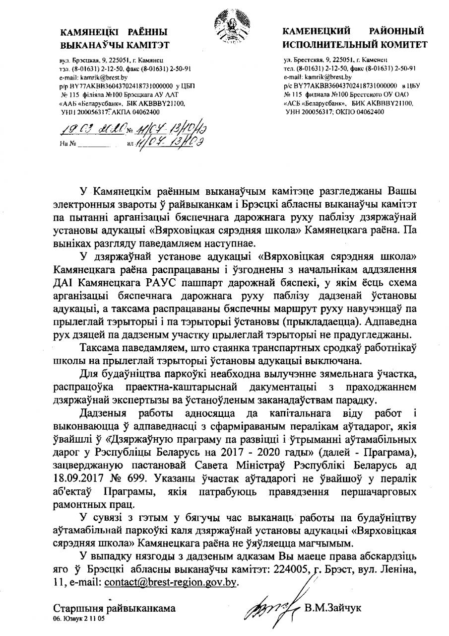 1. Тэрмінова зрабіць паркоўку каля Вярховічскай сярэдняй школы;