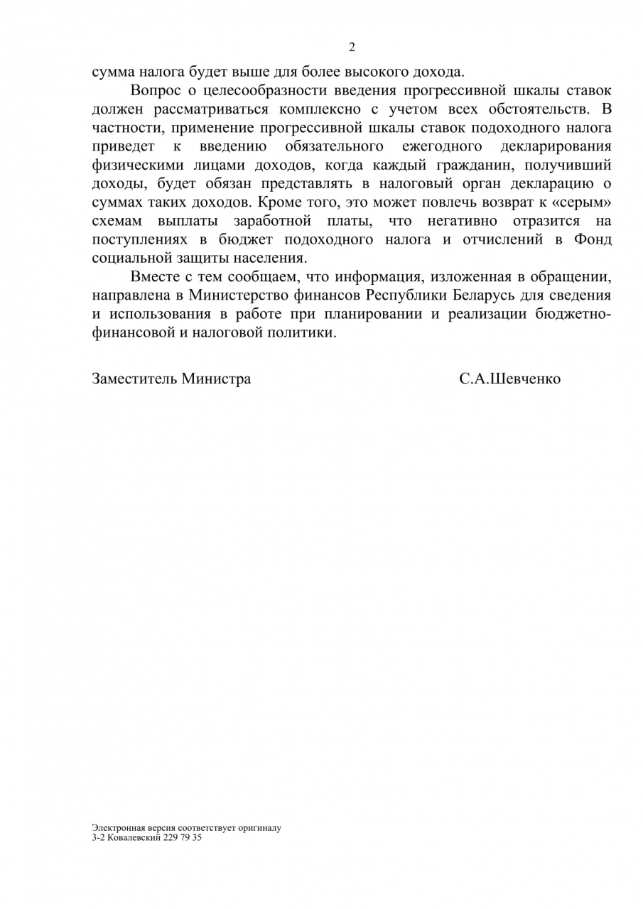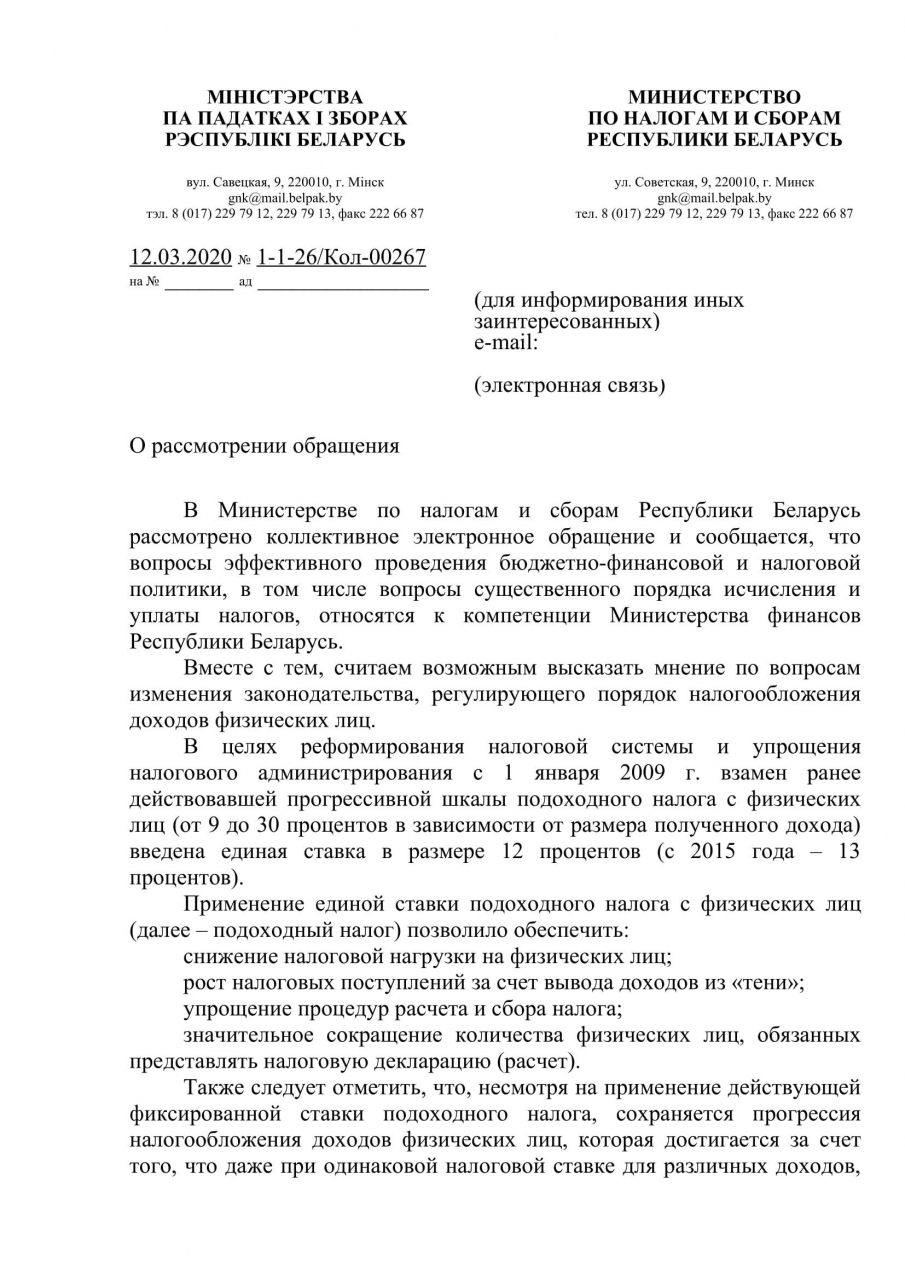 Пока государственные чиновники сообщают, что средняя зарплата "пробила потолок" и составляет более 1000 рублей, большое количество населения Республики Беларусь, по нашим данным, располагает доходами не более 500 рублей. Для социальной справедливости предлагаем ввести прогрессивную шкалу налогообложения. Самое большое преимущество прогрессивного налога заключается в том, что в рамках этой структуры те люди, которые зарабатывают больше дохода, будут платить больше налогов, а те, кто попадает под категорию с более низким доходом, будут платить меньше налогов. Следовательно, эта система оказывает большее давление на более способного или богатого человека одновременно оказывая меньшее давление на менее способного, бедного человека и представителя среднего класса.