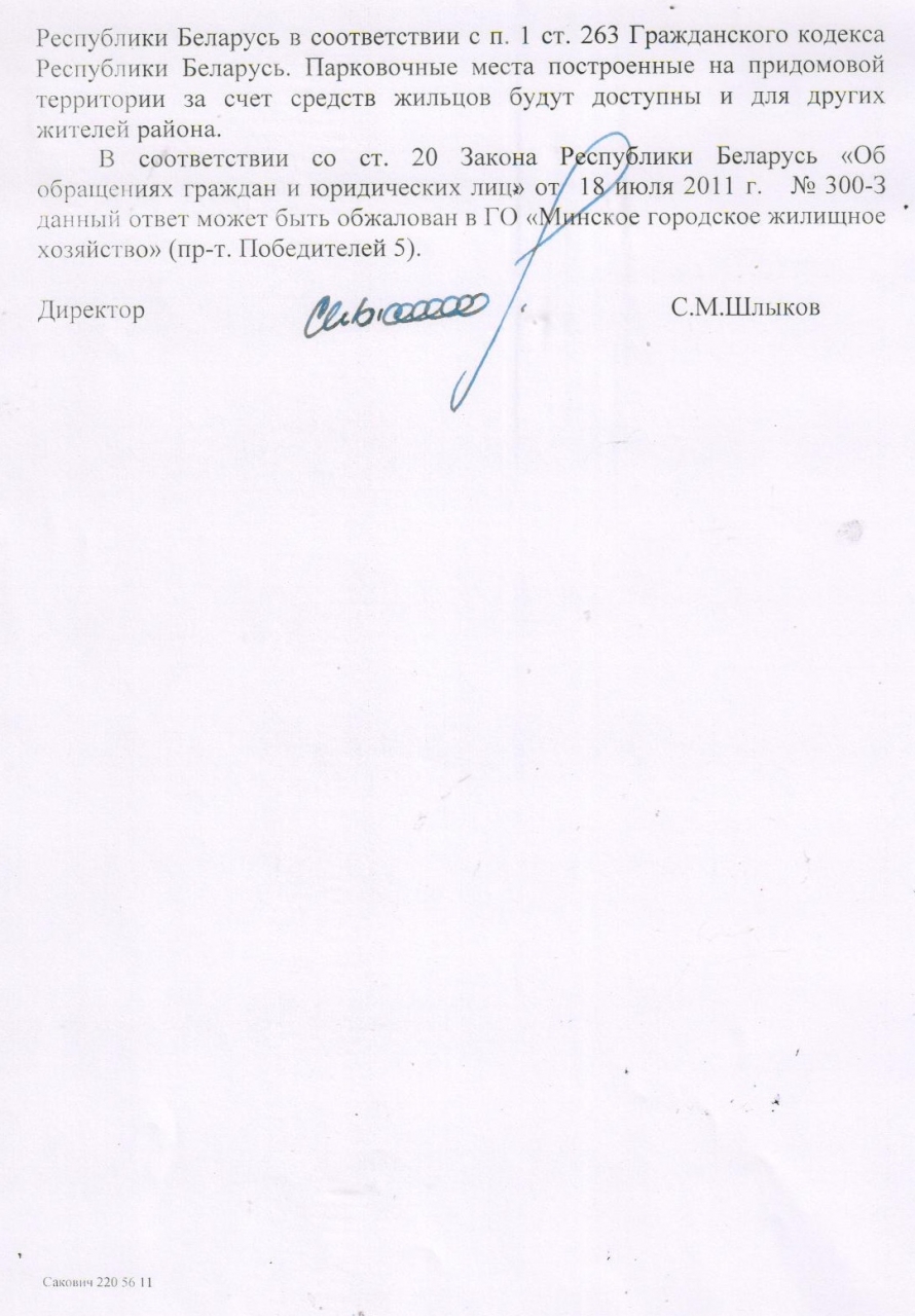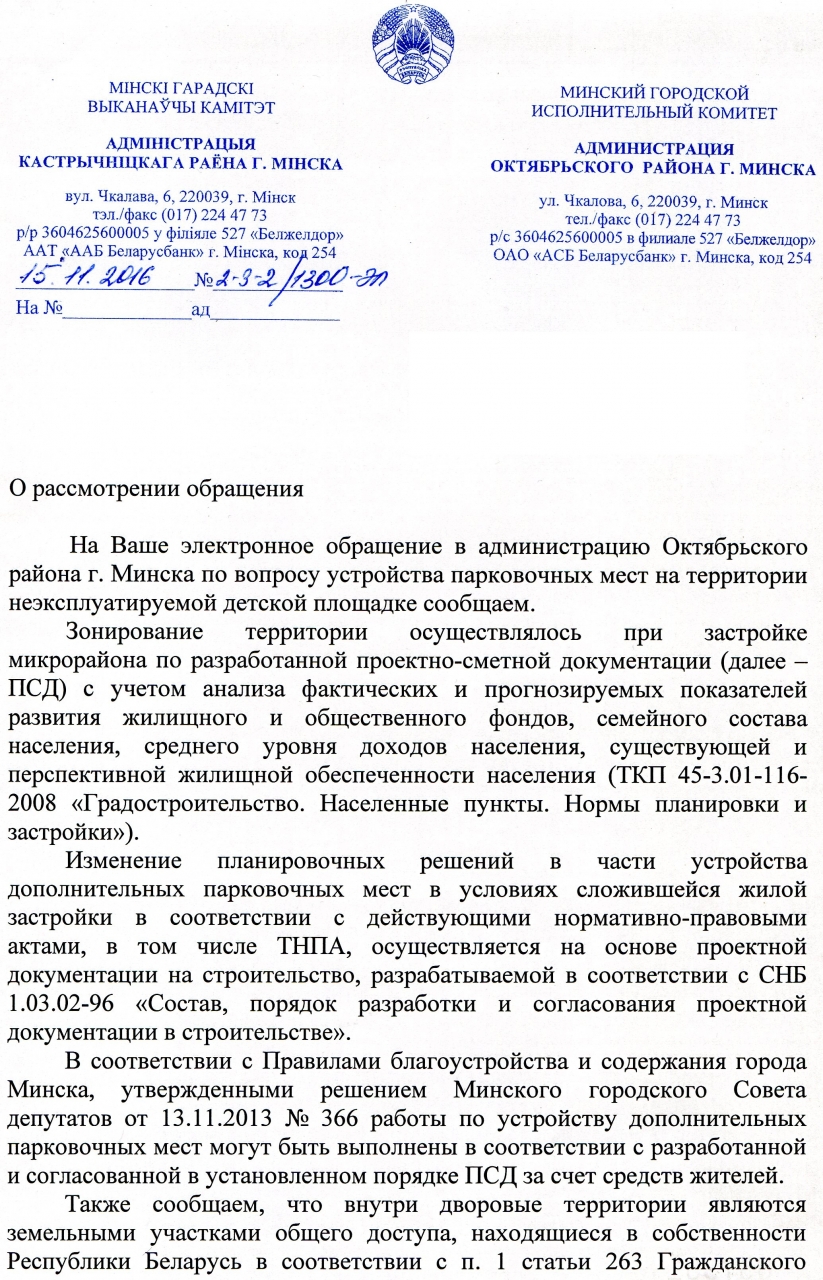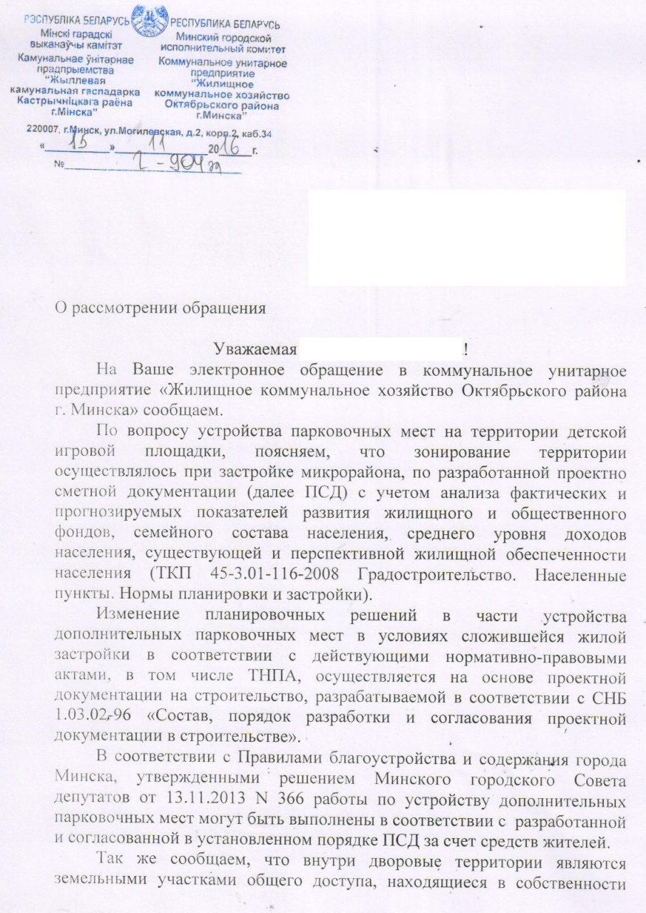 На парковке возле дома (улица Могилевская 4/4) очень мало места, в связи с чем жильцы вынуждены парковаться кое-как, что в том числе наносит вред зеленой зоне, ведь некоторые идут на нарушение и ставят машины на газоне, только чтобы она поместилась. В целом жильцы нашего дома остро нуждаются в дополнительных 10-20 машиноместах.