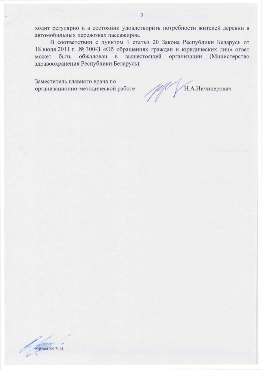 6. Ходатайствовать о решении вопроса по разрешению использования служебного автобуса ГУ РКБ МР местными жителями деревни: членами семьи сотрудников больницы, людьми, отработавшими многие годы в данном учреждении ранее и ушедшими на заслуженный отдых, хотя бы до момента обустройства разворотного кольца и решения вопроса организации транспортного сообщения рейсовым пригородным автобусом.