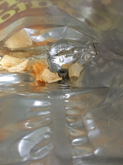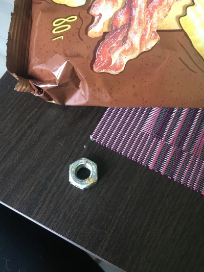 Первая в списке заявительница настоящего обращения приобрела в магазине "Хит", расположенном по адресу г.Минск, ул. Я.Райниса, 1 Д чипсы (торговой марки Don Potato's) белорусского производителя - ОАО "МАШПИЩЕПРОД" (Минская обл., г. Марьина Горка, ул. Чапаева, 15) и на дне упаковки обнаружила железную гайку по размеру ориентировочно 2х2 см.
