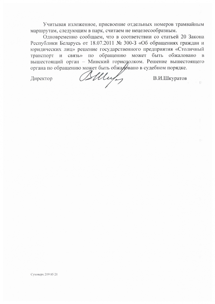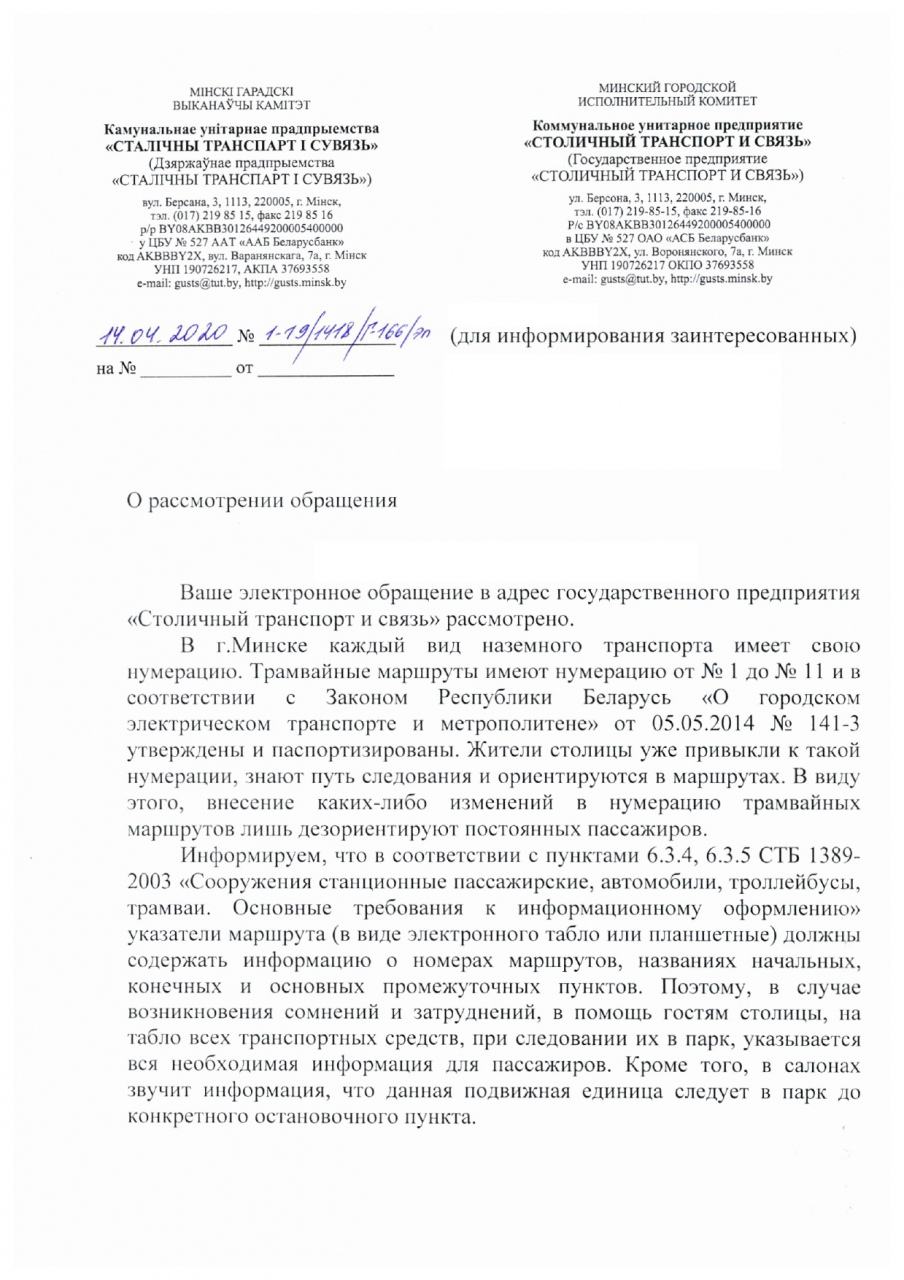 Есть проблема с трамваями, которые отправляются в парк (например, "У парк Батанiчная па 3 маршруце"). А именно: гости столицы, а в особенности иностранцы, понятия не имеют, где находится какой-то парк, но видят цифру, например, "3", и могут ошибочно подумать, что трамвай едет в Серебрянку или в сторону ДС "Озеро".