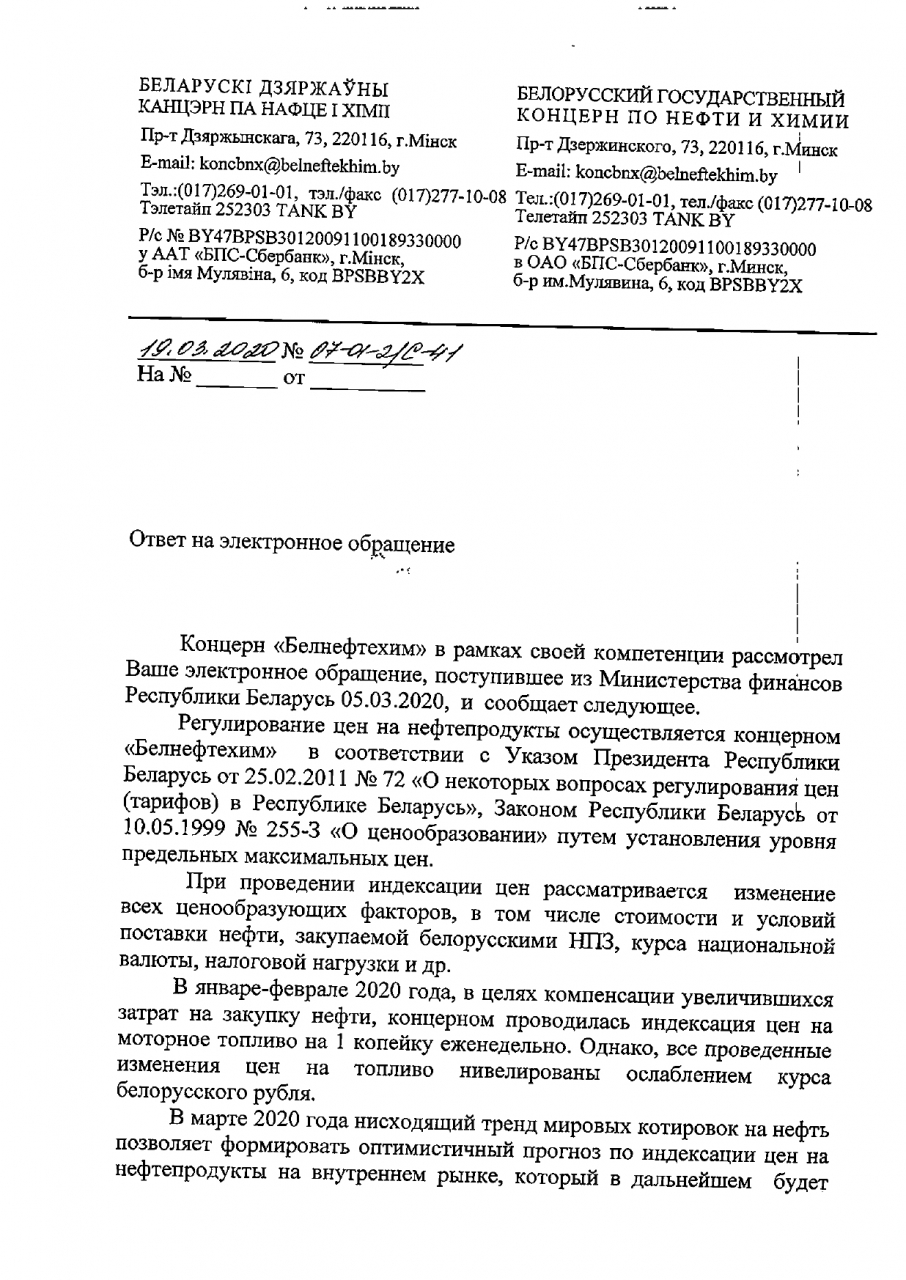 При проведении индексации цен на нефтепродукты рассматривается изменение всех ценообразующих факторов. В проводимом концерном "Белнефтехим" в ноябре 2018 г. опросе общественного мнения по вопросу о поэтапном или одномоментном изменении цен на топливо, за поэтапное увеличение выступило большинство опрошенных.