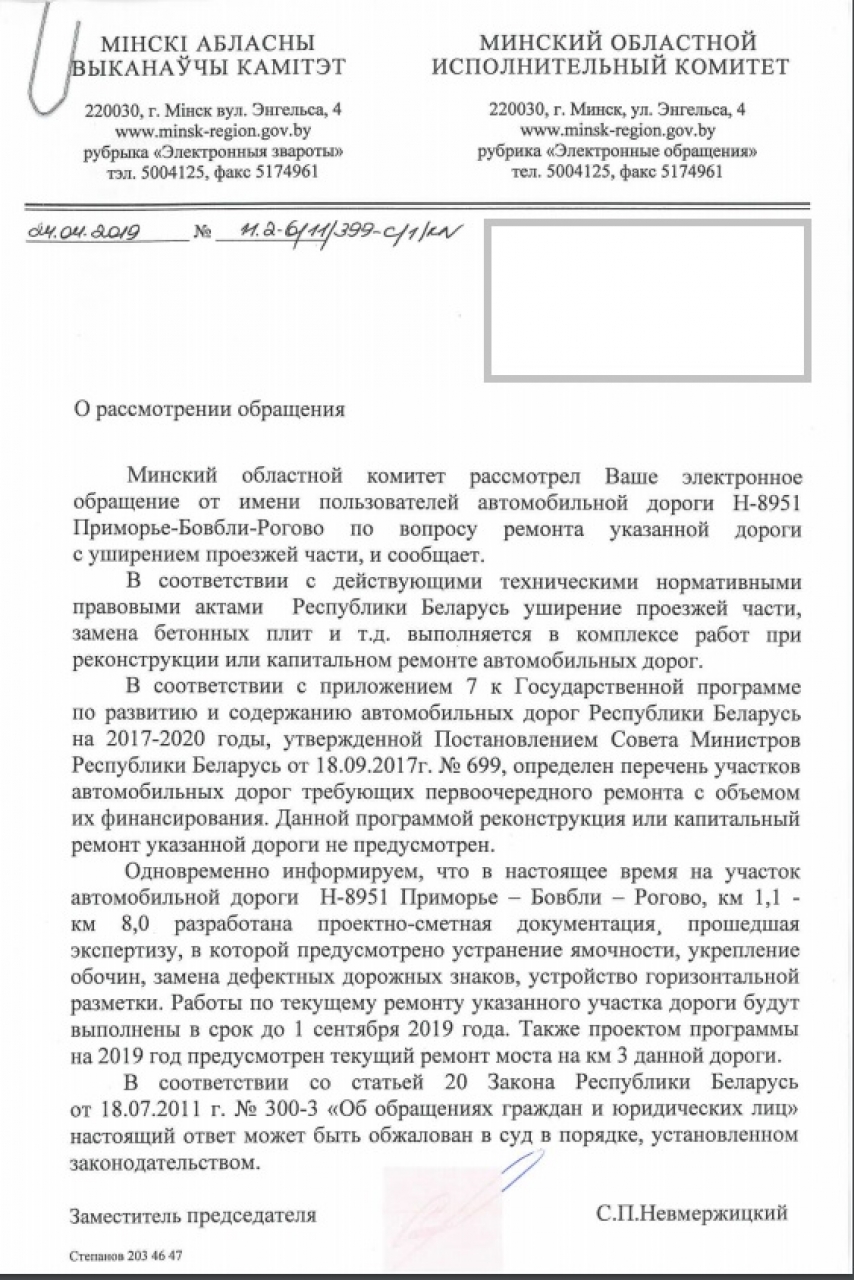 Дорога Н8951 Приморье-Семков Городок-Семково-Бровки по-прежнему узкая, находится в ужасном состоянии и опасна для передвижения автомобилей и пешеходов. Каждый год Минский облисполком игнорирует проблему там, где она есть.