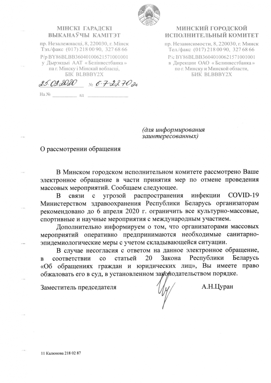 Организаторам рекомендовано до 6 апреля 2020 г. ограничить все культурно-массовые, спортивные и научные мероприятия с международным участием.