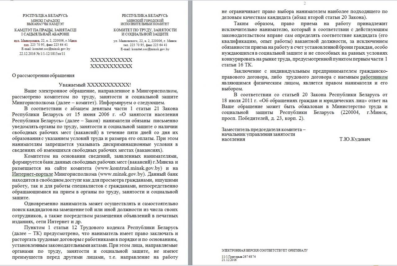 4. В случае более одного отклика (не от ИП, а от физических лиц) в течении месяца после размещения объявления о вакансии - обязательно нанять на эту вакансию одного из откликнувшихся, обладающего более богатым опытом и навыками.