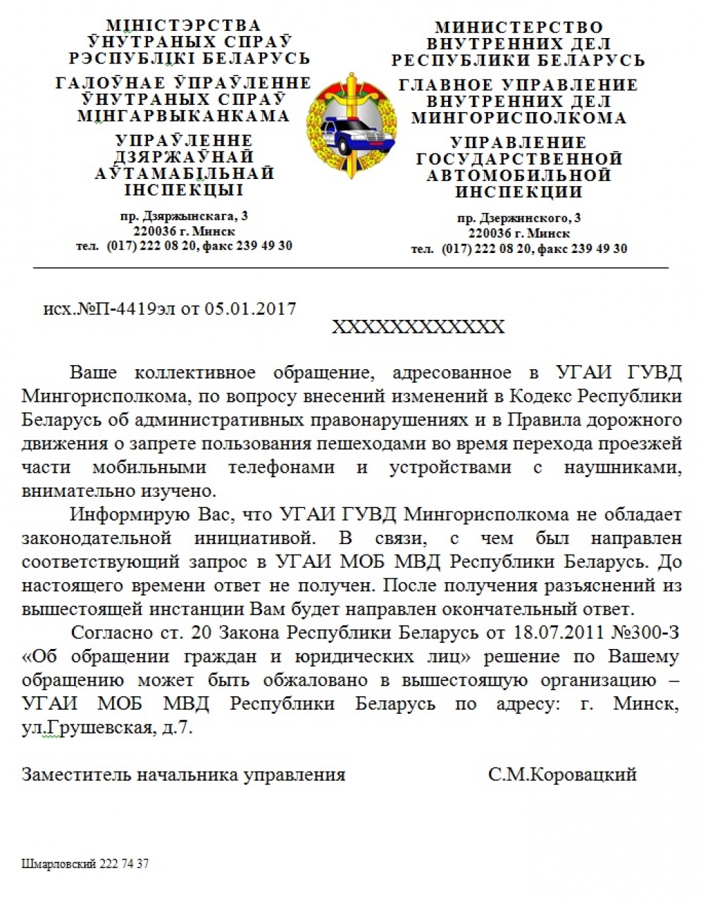 По вопросу внесения изменений в законодательство направлен запрос в МВД Республики Беларусь. Окончательный ответ будет направлен после получения разъяснений из вышестоящей инстанции.
