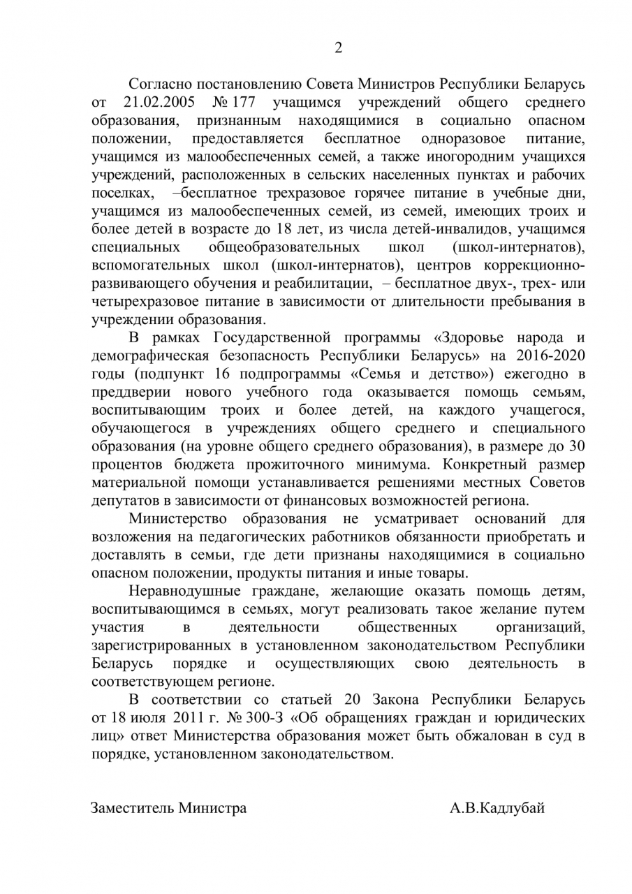 Уважаемый Александр Григорьевич, создание правового акта, подписание, согласование, организация процесса - все это сложно и длительно, но помните, что все это время маленький малыш каждый день мечтает всего лишь о яблоке или котлете. Неужели мы, взрослые и сытые, не можем ничем им помочь? Очень Вас просим оперативно и без усложнений организовать помощь деткам.