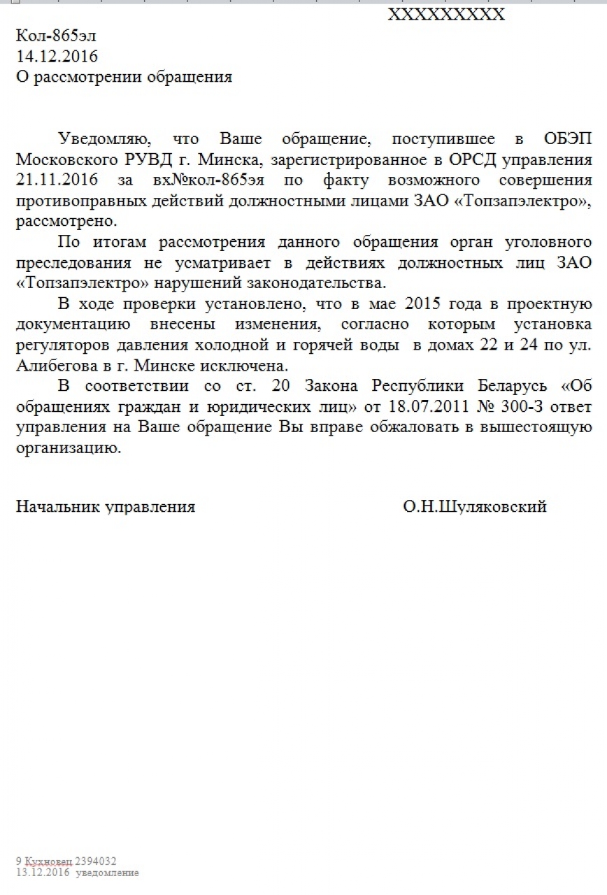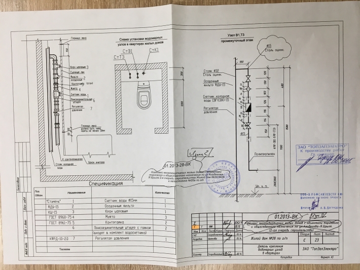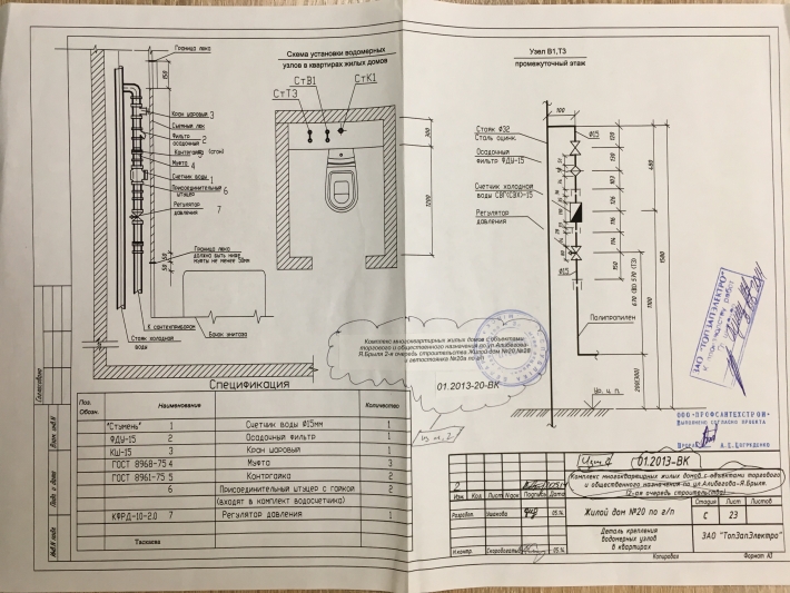 08.11.2016 года группой собственников домов 22 и 24 по ул.Алибегова в г.Минске была обнаружена проектная документация, согласно которой в квартирах перед счётчиками горячей и холодной воды должны быть установлены РЕГУЛЯТОРЫ ДАВЛЕНИЯ ХОЛОДНОЙ И ГОРЯЧЕЙ ВОДЫ КФРД 10-2.0.