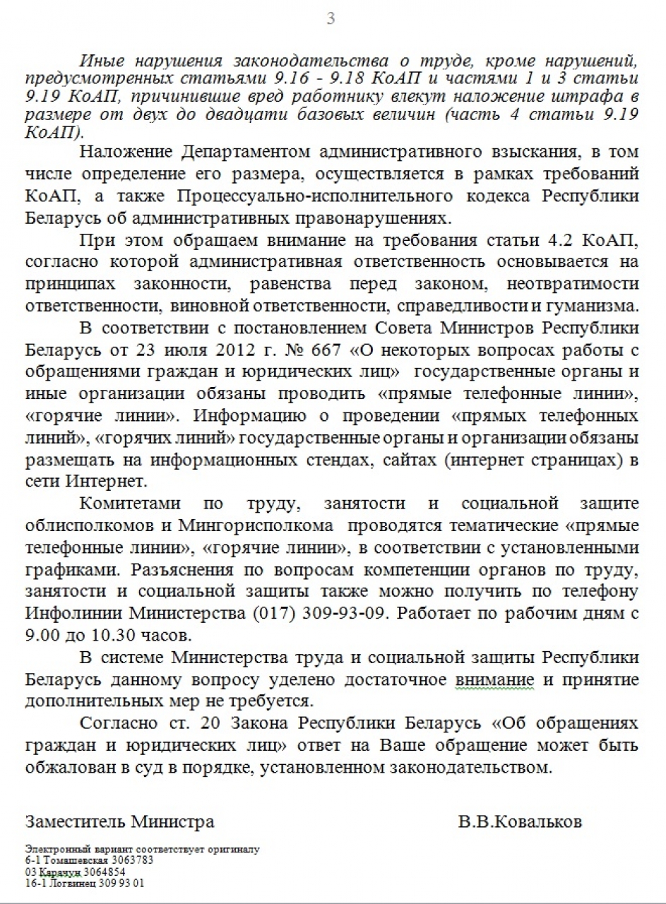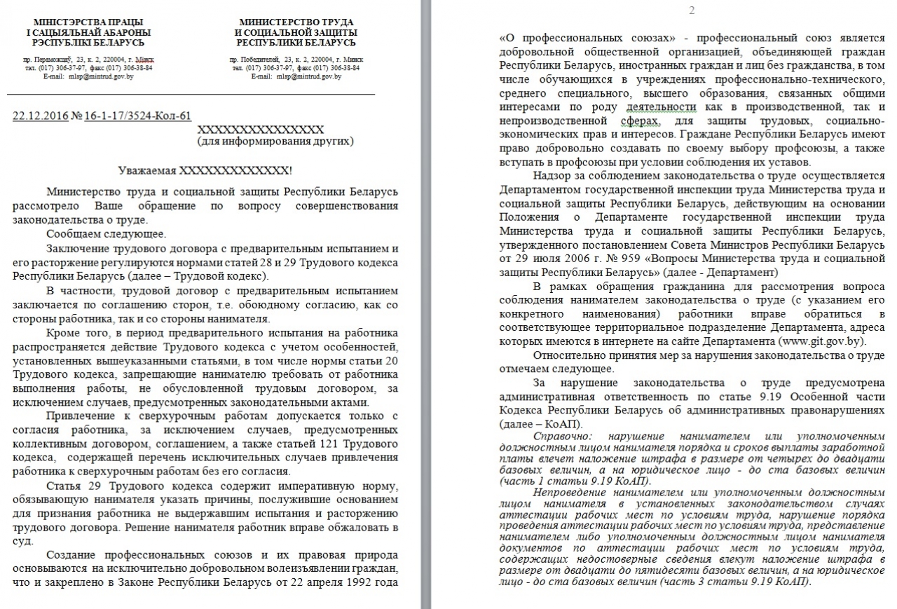 Надзор за соблюдением законодательства о труде осуществляется Департаментом государственной инспекции труда (www.git.gov.by).