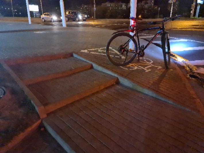 Также просим конструктивно заранее выделить зоны ступенек и спуска, чтобы при поездке на велосипеде случайно не попасть на эти самые ступеньки перехода и вследствие чего не оказаться под колёсами автомобиля.