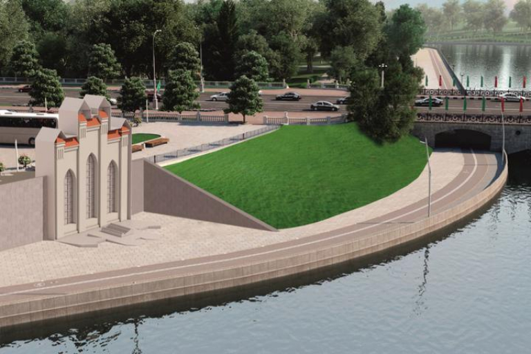 “Такое рашэнне здымае праблему ЎВАРВАННЯ ў ансамбль праспекта Незалежнасці, арганізоўвае набярэжную, арыентуе гістарычны аб'ект на паркавыя перспектывы і дазваляе разглядаць узноўлены фрагмент не толькі ў структуры генеральнага плана шматфункцыянальнага комплексу, але і гарадскога парку…”