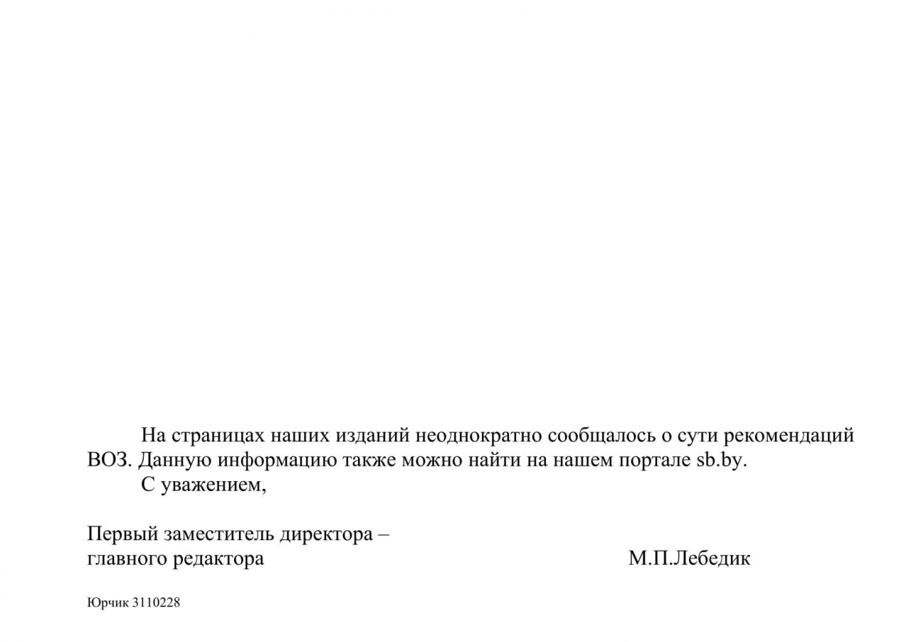 На страницах изданий "CБ.Беларусь сегодня" неоднократно сообщалось о сути рекомендаций ВОЗ.