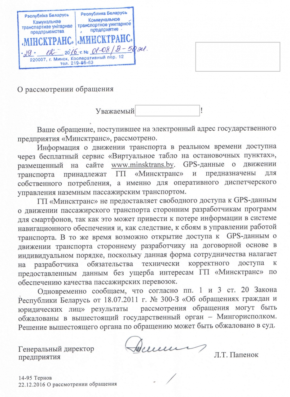 Прошу открыть API для GPS-данных о движении транспорта и сделать их доступными для разработчиков программ для смартфонов.