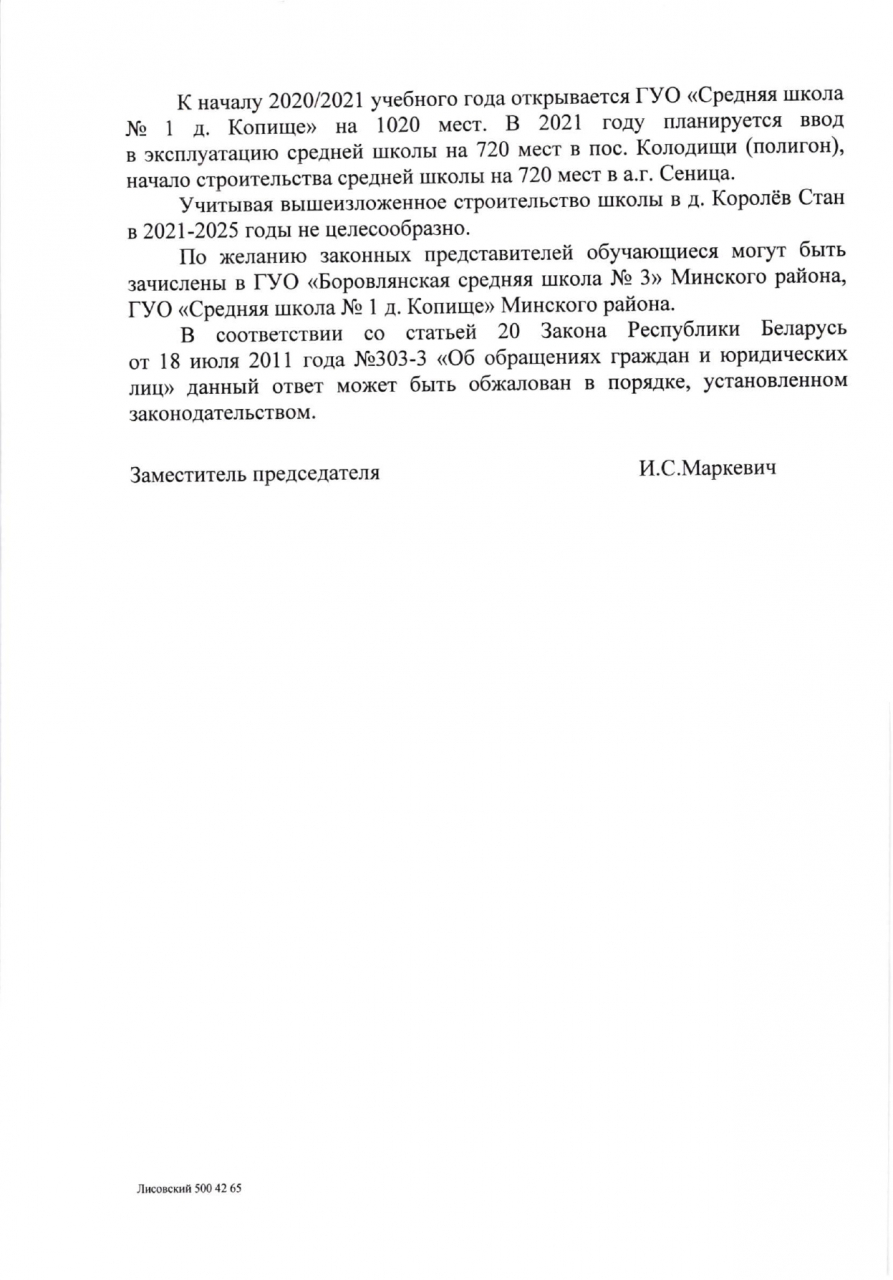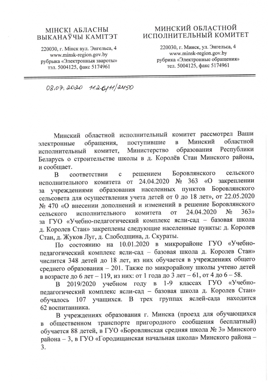 Мы, жители д.Королев Стан, а также жители ближайших населенных пунктов и иные неравнодушные граждане просим рассмотреть возможность строительства новой школы в деревне Королёв Стан в период 2020-2025 года.
