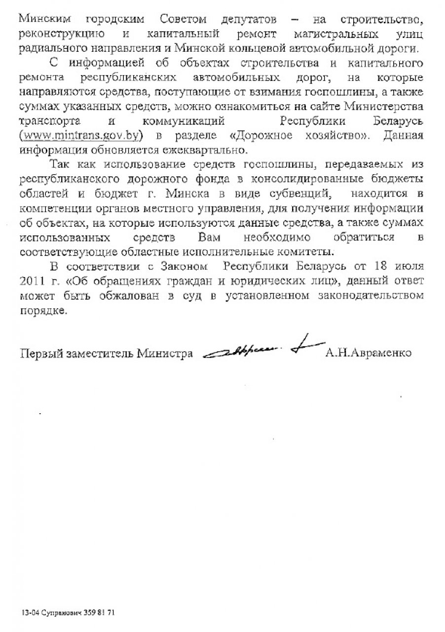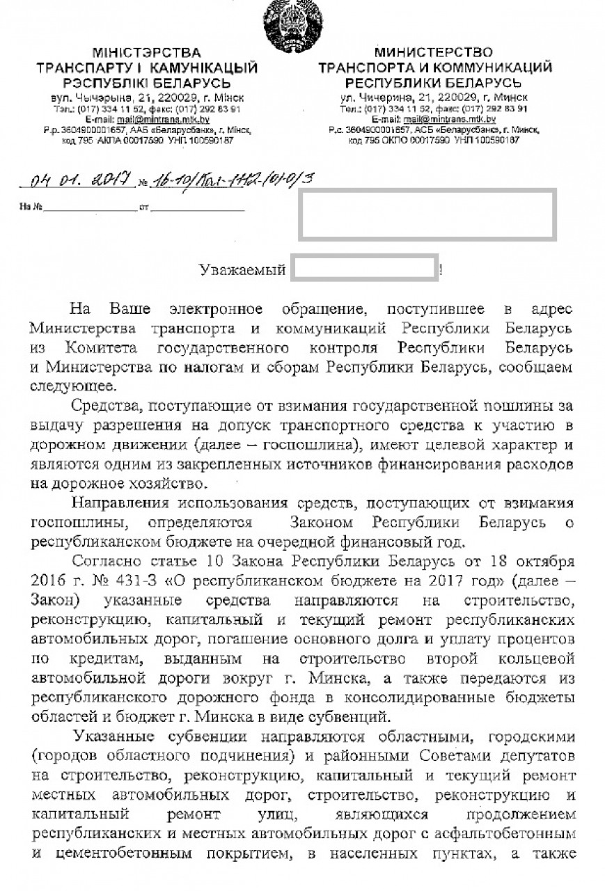 Информирую вас, что многие автовладельцы умышленно не платят так называемый дорожный сбор, поскольку денежные средства направляются не по назначению. Кроме того, катастрофически увеличивается количество автотранспорта, которое не проходит ТО именно из-за непонятной ситуации со сбором. Просим рассмотреть предложения по реализации варианта, который на наш взгляд сможет изменить ситуацию, не прибегая к повышению штрафных санкций.