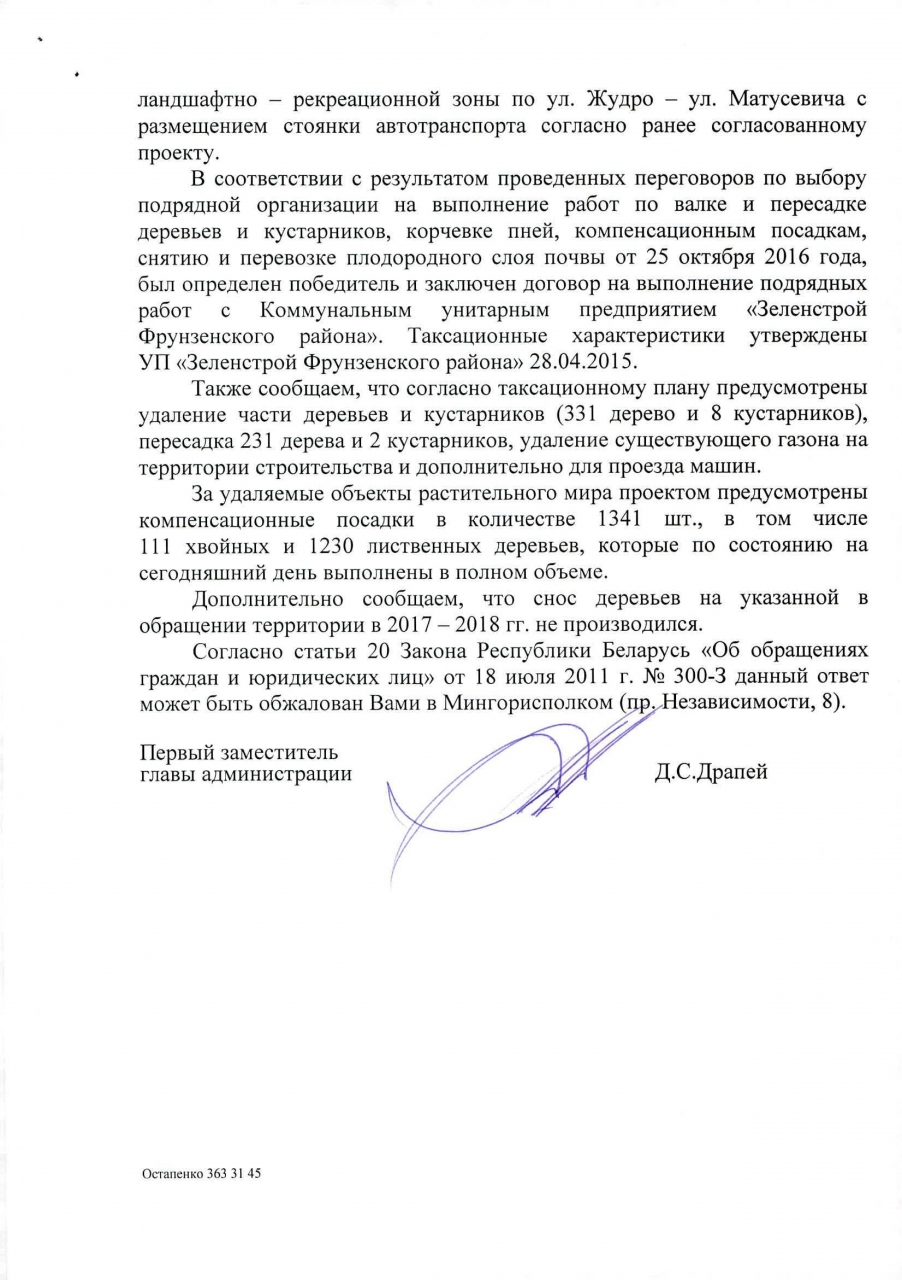 Компенсационные посадки выполнены УП Зеленстрой Фрунзеского района в полном обьеме