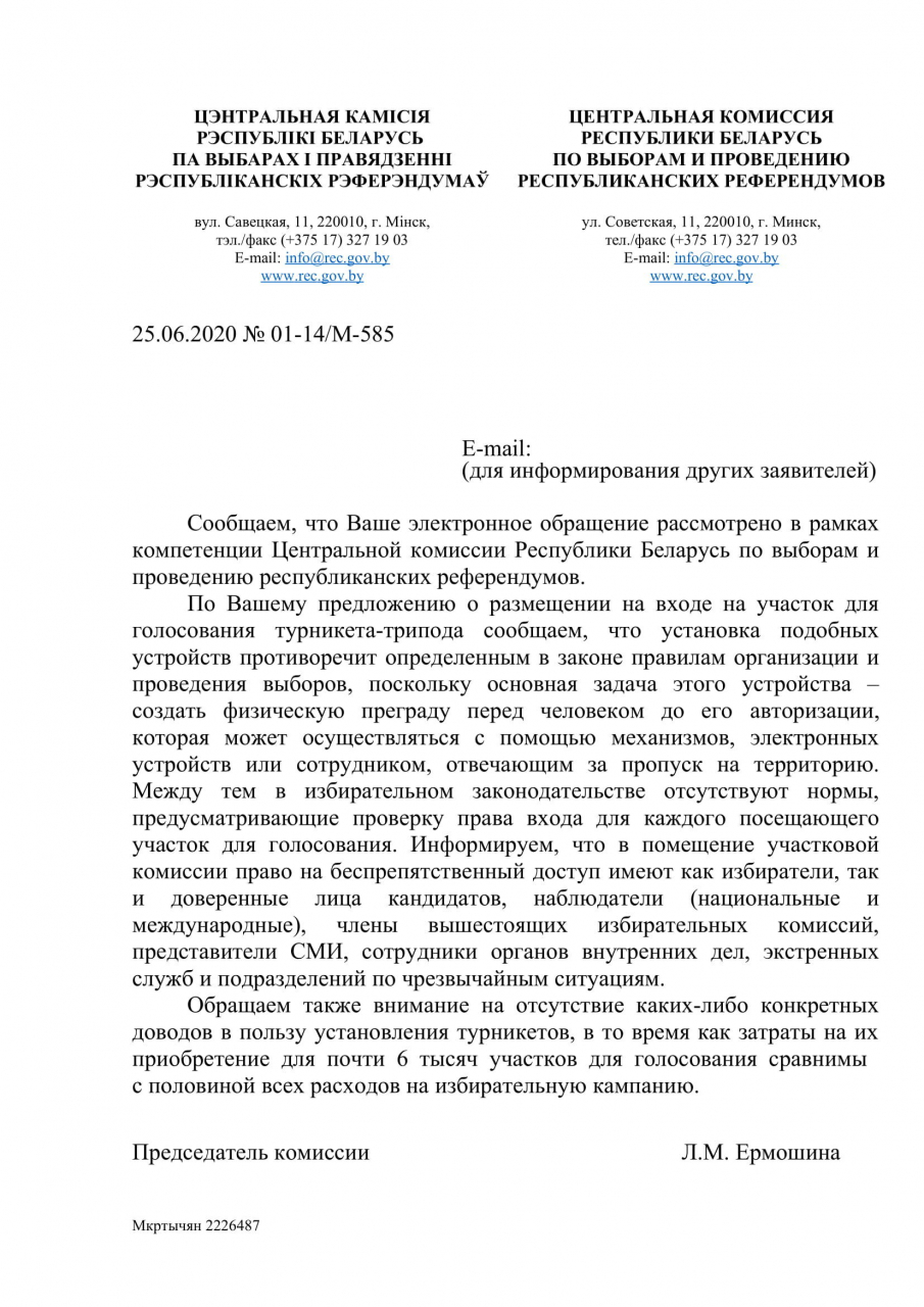 Мы, народ Республики Беларусь, желая обеспечить гражданское согласие, незыблемые устои народовластия и правового государства просим Центральную комиссию Республики Беларусь по выборам и проведению республиканских референдумов: