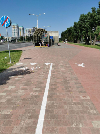 3. Зона для движения велосипедистов на развязке с ул.Алибегова была создана на более рельефной плитке.