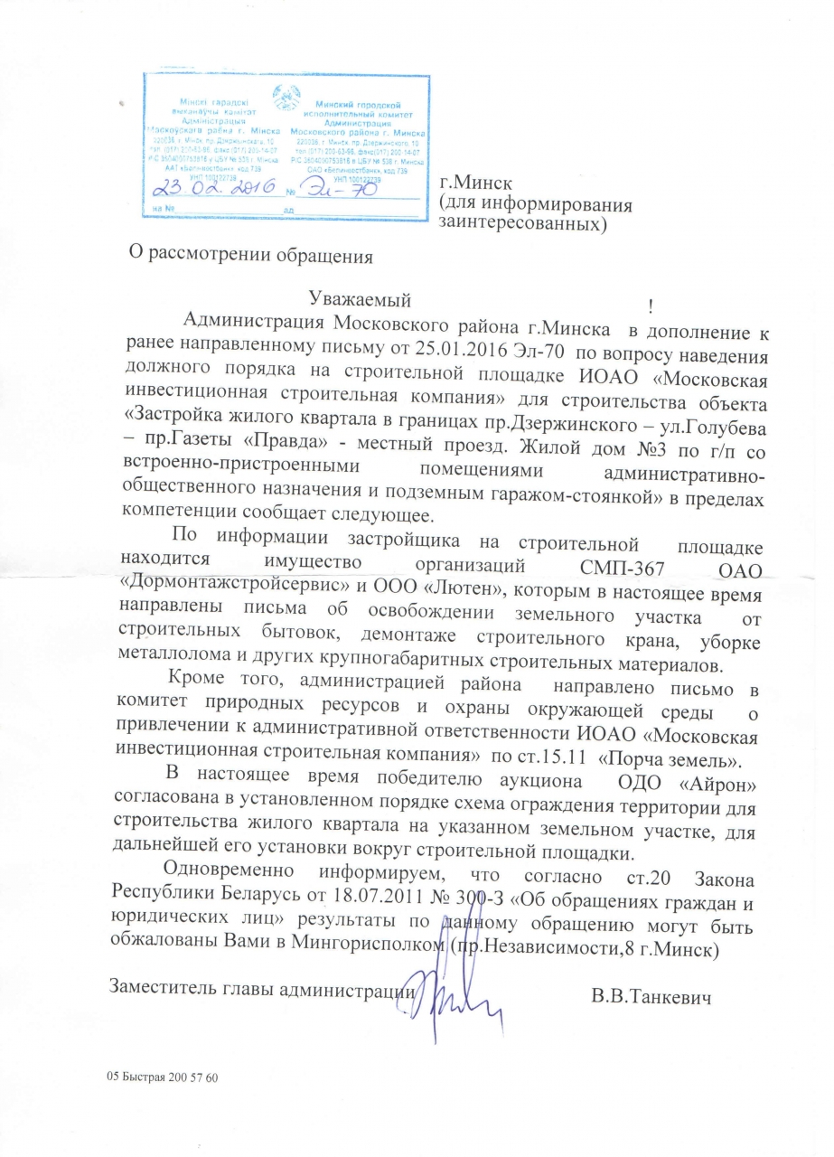 Администрацией также инициирован процесс привлечения ИОАО "Московская инвестиционная строительная компания" к ответственности за порчу земель. Организациям, оставившим свое имущество и металлолом на площадке, поручено убрать территорию.