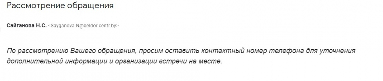 Заявителей обращения просят оставить контактный номер телефона для уточнения дополнительной информации и организации встречи на месте.