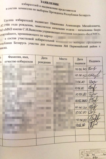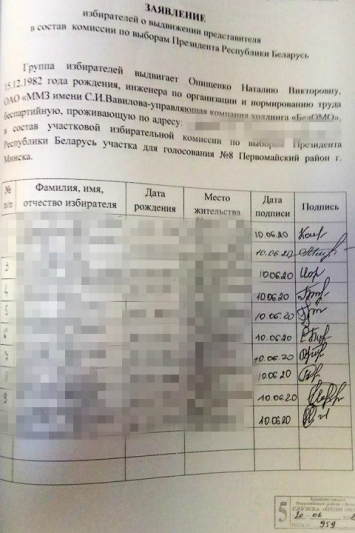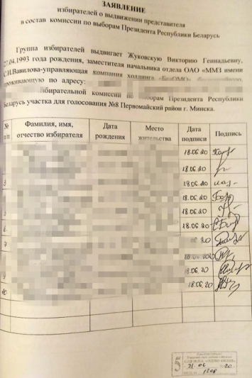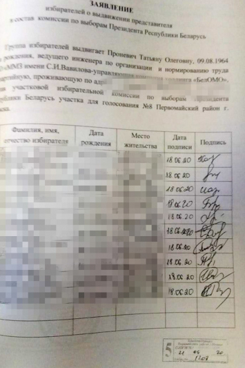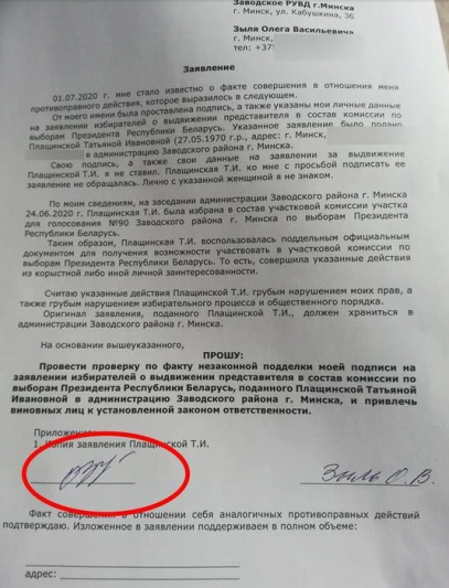 На интернет-портале TUT.BY в разделе "Новость дня" опубликованы статьи «Я не ставил за нее подпись». Избиратели написали заявление в милицию на члена комиссии (https://news.tut.by/society/691944.html 08.07.2020) и «Разве можно за спиной так делать?» В милицию написали еще одно заявление на членов участковой комиссии (https://news.tut.by/society/692542.html 13.07.2020) .