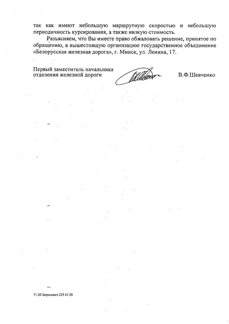 - подписал: Первый заместитель начальника отделения железной дороги Шевченко В.Ф.
