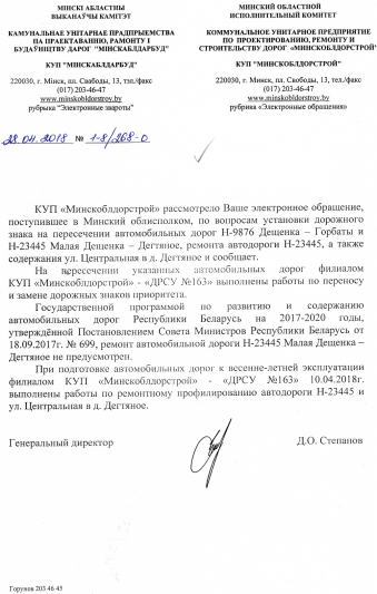 Участок дороги Н23445 от аг. Дещенка до дер. Дегтяное нуждается в асфальтировании.