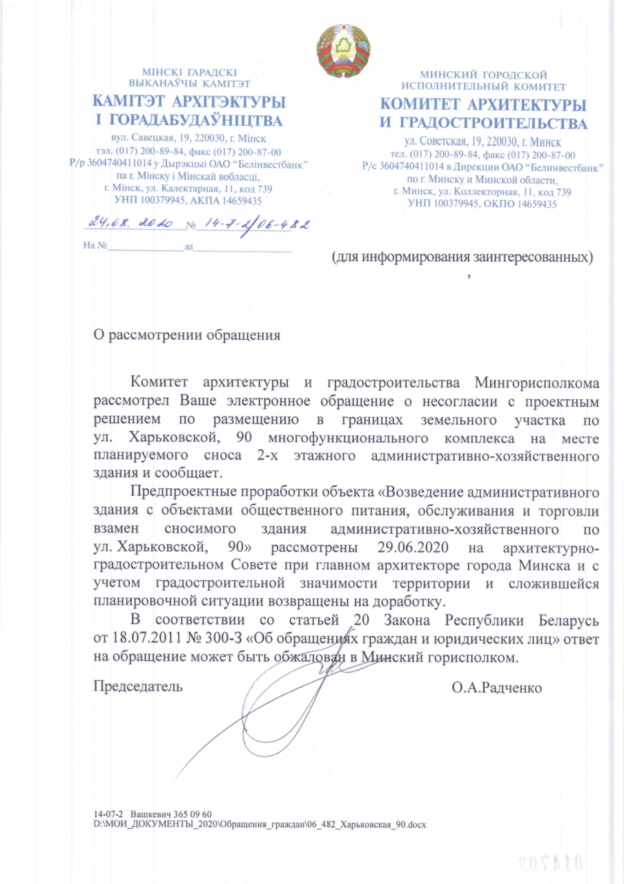 Мы, жители и гости города Минска, обеспокоены предпроектным решением многофункционального комплекса, который хотят построить на месте двухэтажного дома на пересечении проспекта Пушкина и улицы Харьковской (ул. Харьковская, 90).