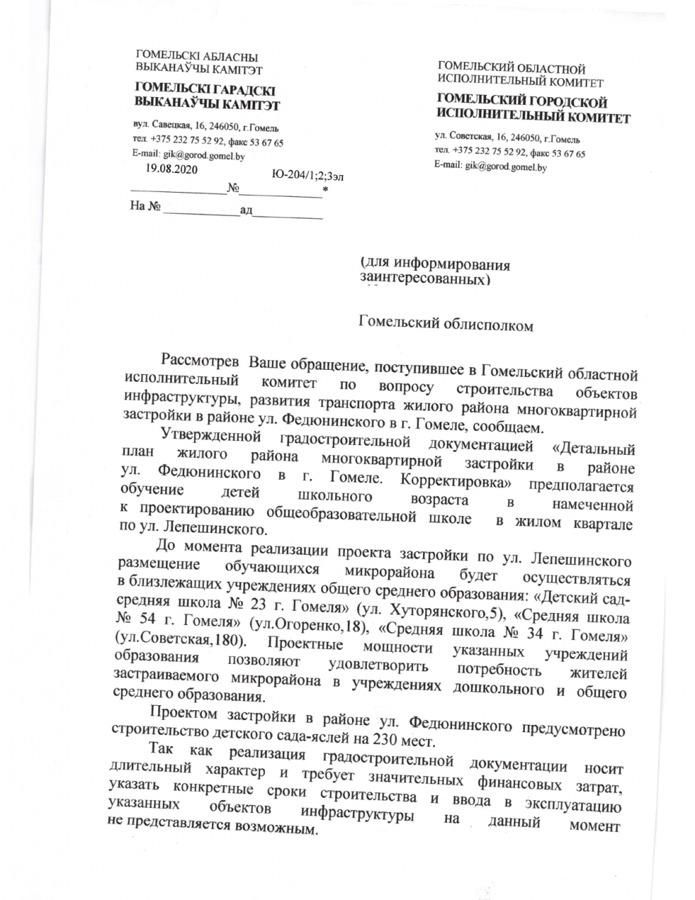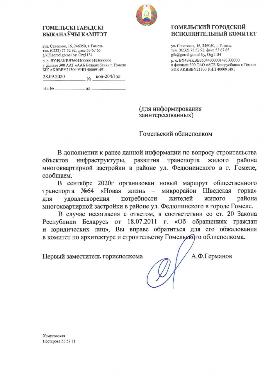 На основании изложенного требуем принять меры, направленные на решение вопроса о строительстве новой школы, детского сада, а также на решение транспортного вопроса в микрорайоне Федюненский.