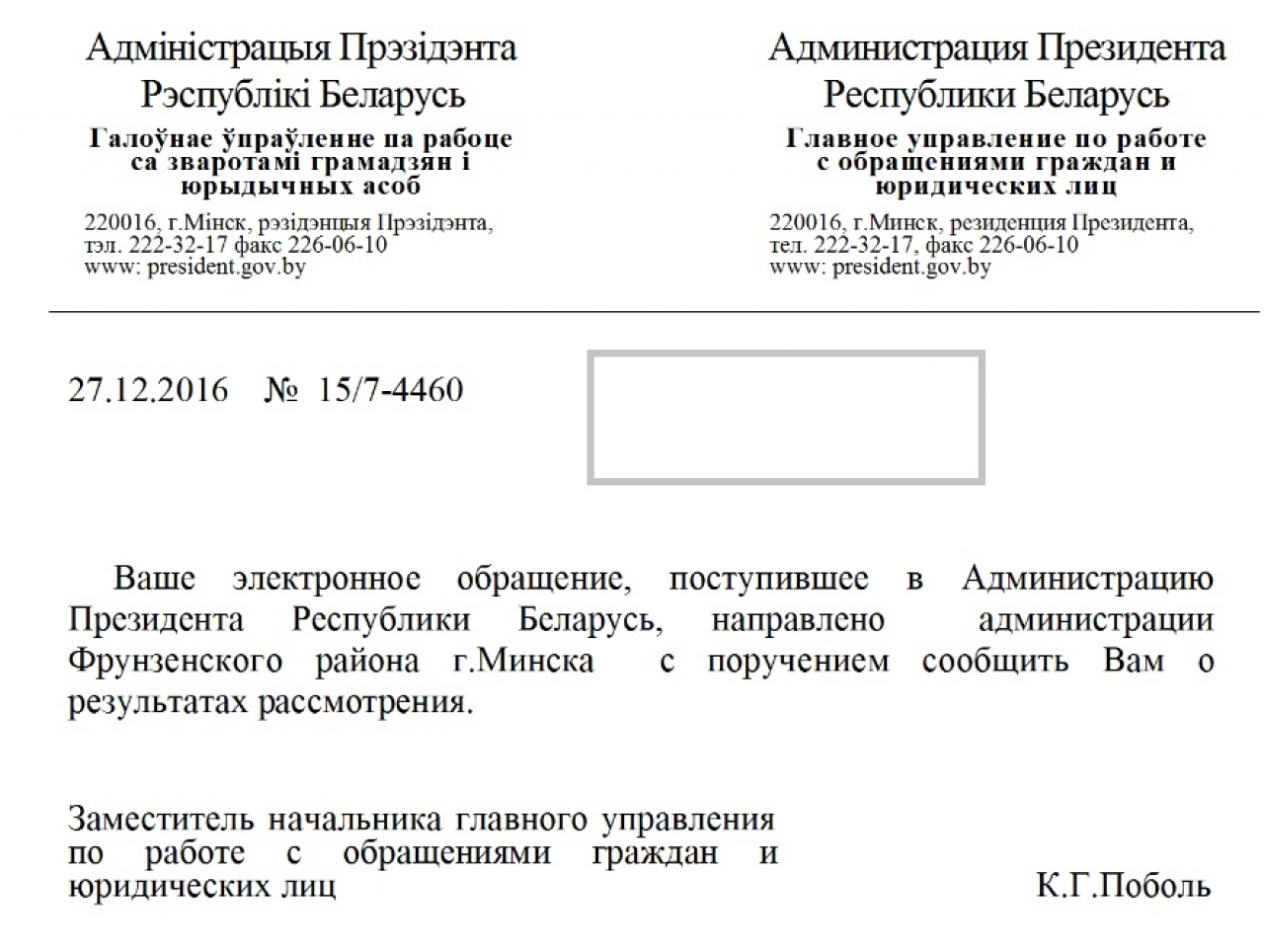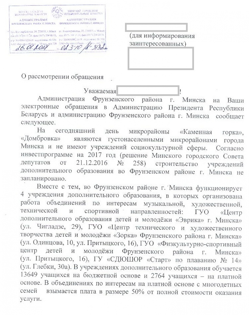 Перенаправлено в администрацию Фрунзенского района