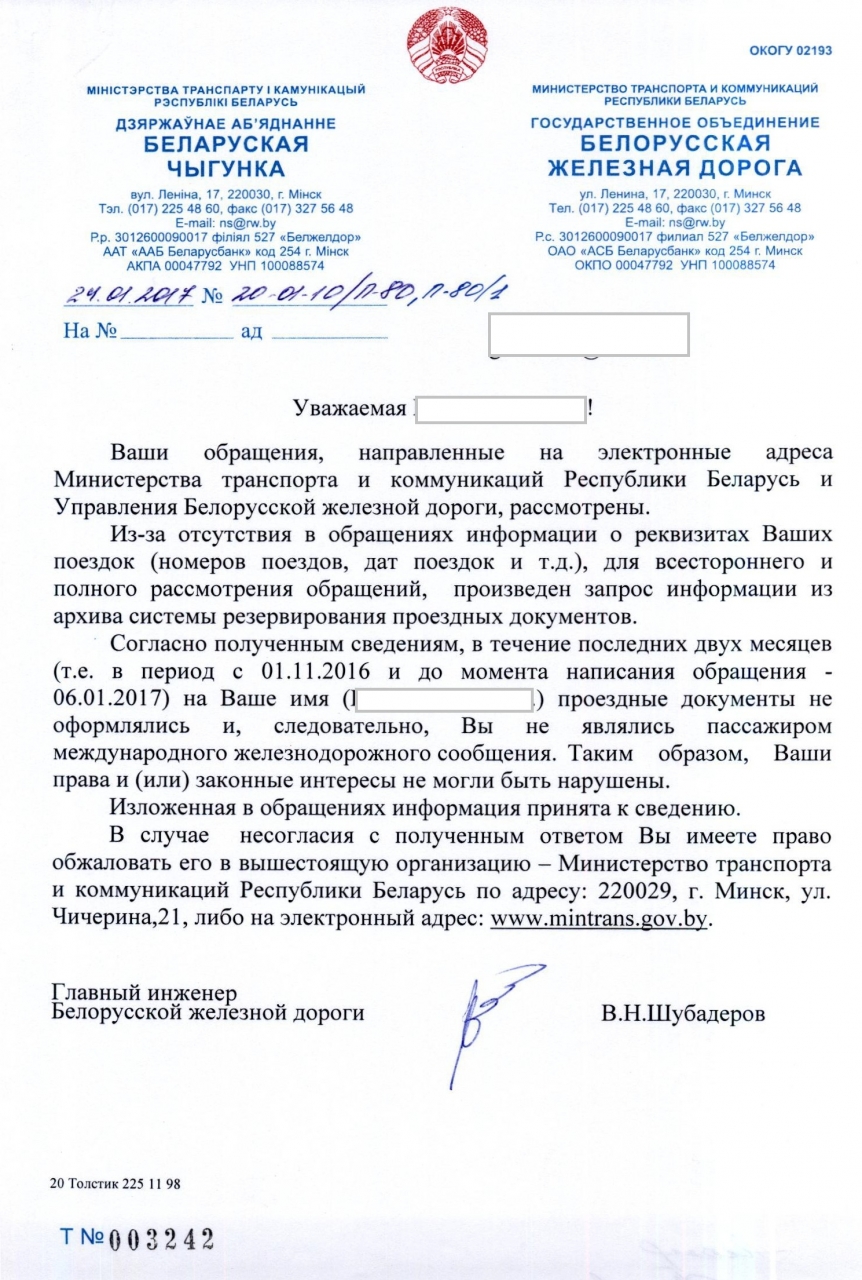 Так как автор не являлся пассажиром поездов международного сообщения в последние 2 месяца, его права не могли быть нарушены. Обращение принято к сведению.