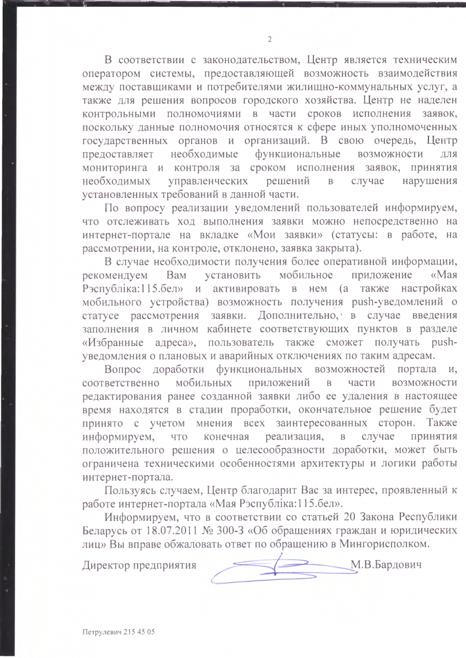 Просим произвести доработки портала «Моя республика» 115.бел в соответствии с теми функциями, которые на него возложены: