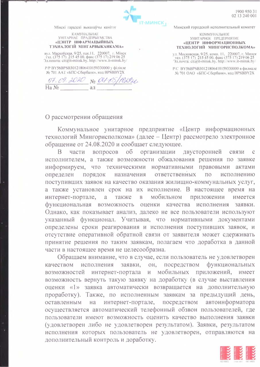 2. Обеспечить двухстороннюю связь с отправителем, что подразумевает разумный срок принятия или отклонения предложенного решения отправителем запроса, без изменения статуса заявки на "выполнено".