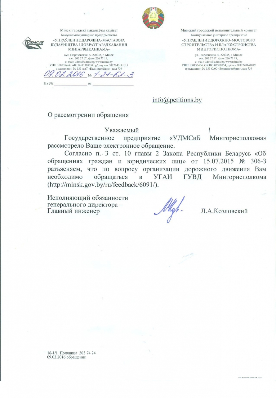 Разъяснено, что вопросы организации дорожного движения находятся в компетенции УГАИ ГУВД Мингорисполкома.