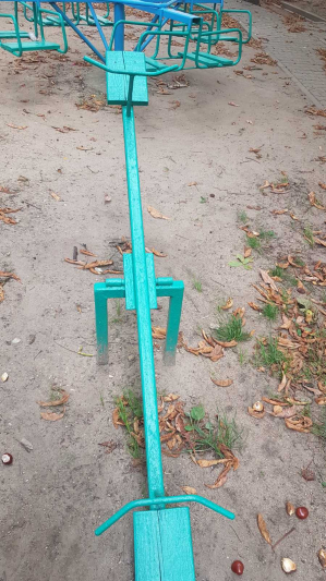 5. качели-балансир - отсутствуют опоры для ног у каждого места сидения при свободном пространстве менее 230 мм и амортизация, хотя согласно п.4. 7 должны быть опоры для ног у каждого места сидения под