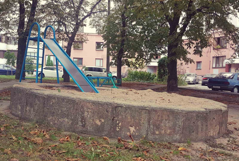 3. фундаменты оборудования (песочницы) находятся на поверхности покрытия игровой площадки, согласно п.4.2.14 СТБ ЕН 1176-1 элементы фундамента должны быть на глубине не менее 200 мм от игровой поверхности и согласно п.8.2.6 СТБ ЕН 1176-7 должно проводиться техническое обслуживание для восстановления ударопоглощающих покрытий до необходимой высоты;