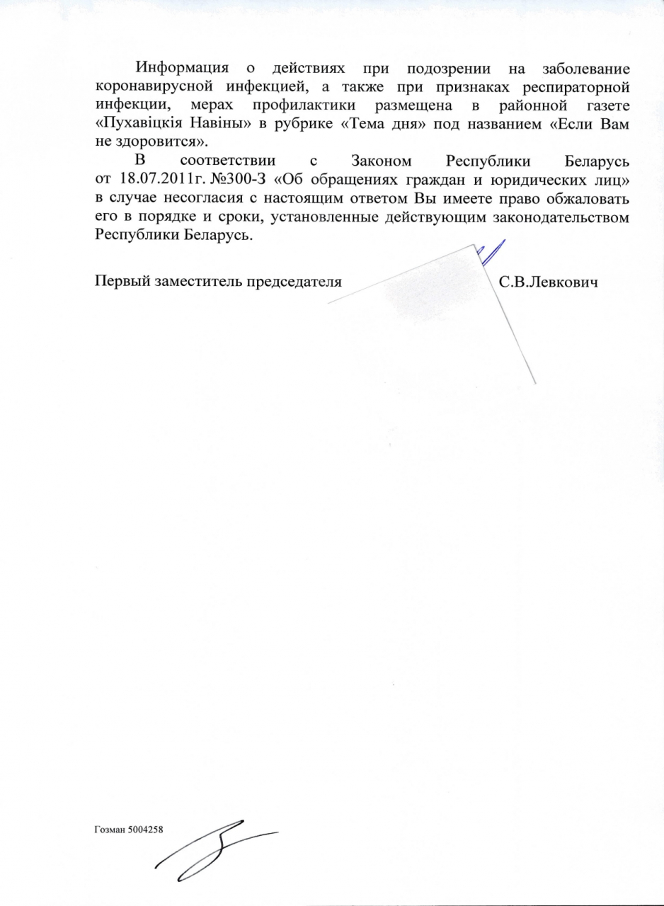 Таким образом, в связи с мрачной обстановкой в Пуховичском районе, сложившейся из-за коронавируса, и дабы не допустить распространения этого страшного вируса, просим: