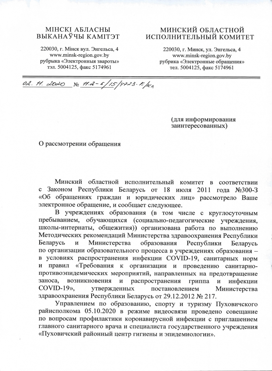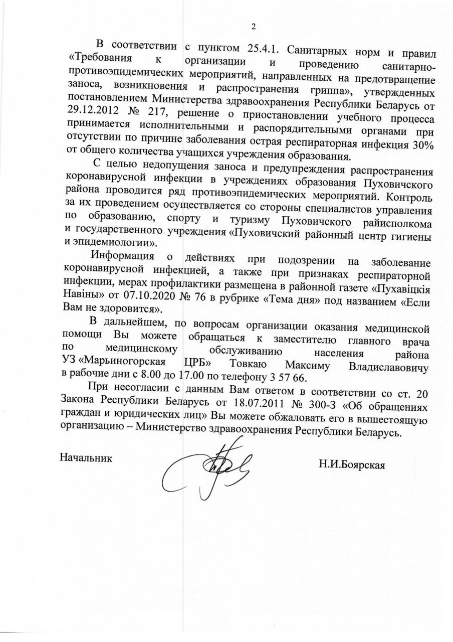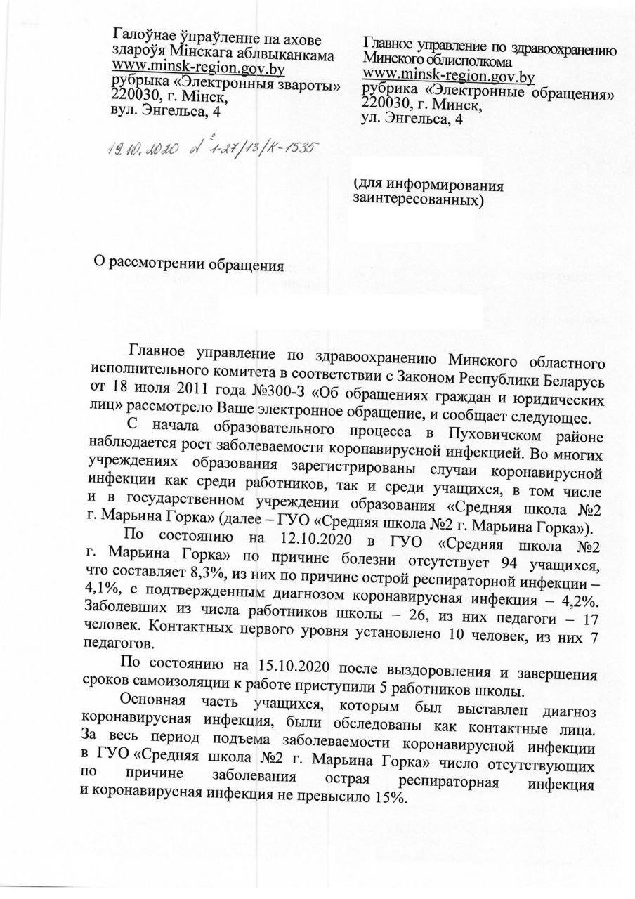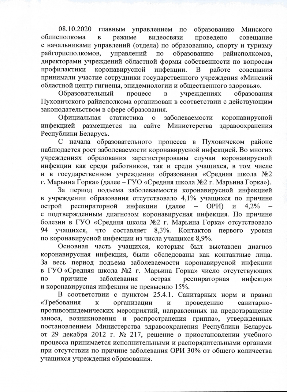 3. Сообщить достоверную информацию по числу заболевших COVID-19 и другими острыми респираторными заболеваниями в учреждениях образования Пуховичского района. Разместить данную информацию на сайте районной газеты "Пухавіцкія навіны" gorka.by.