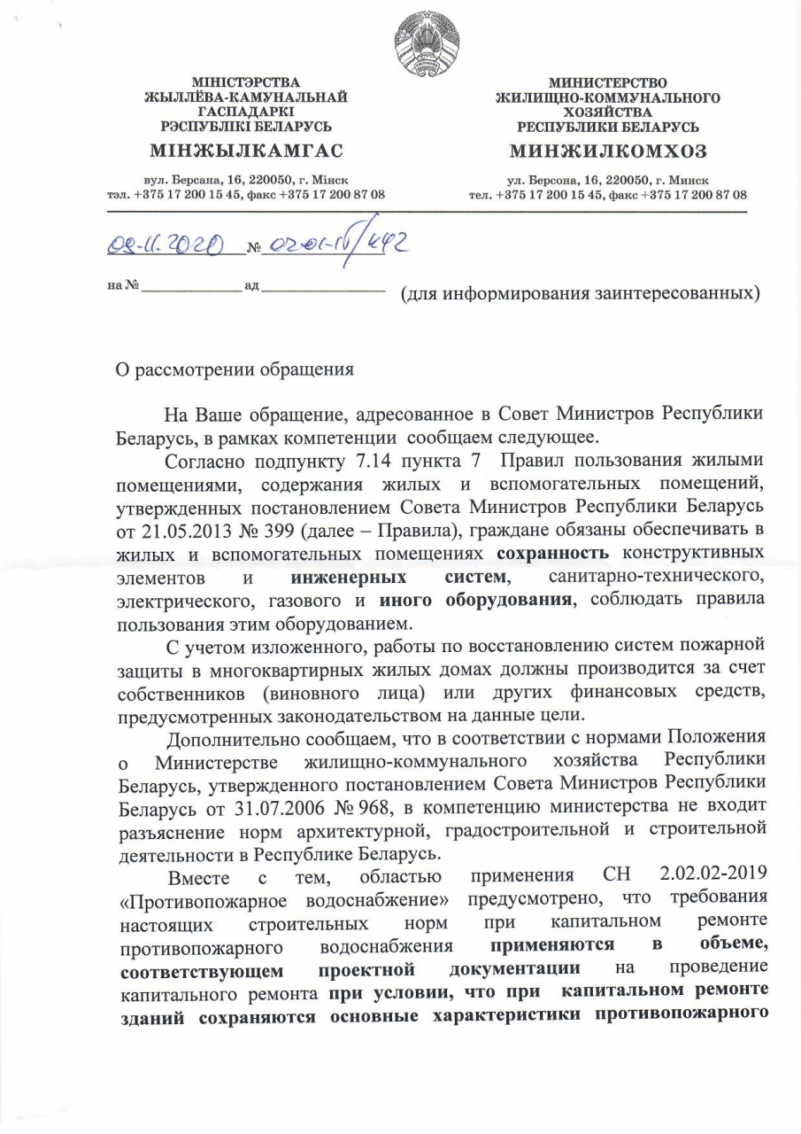 о Министерстве архитектуры и строительства Республики Беларусь, который устанавливает, что Минстройархитектуры в соответствии с возложенными на него основными задачами осуществляет в том числе функции согласования проектов технических нормативных правовых актов, используемых в архитектурной, градостроительной и строительной деятельности, в том числе нормы и правила пожарной безопасности, просим: