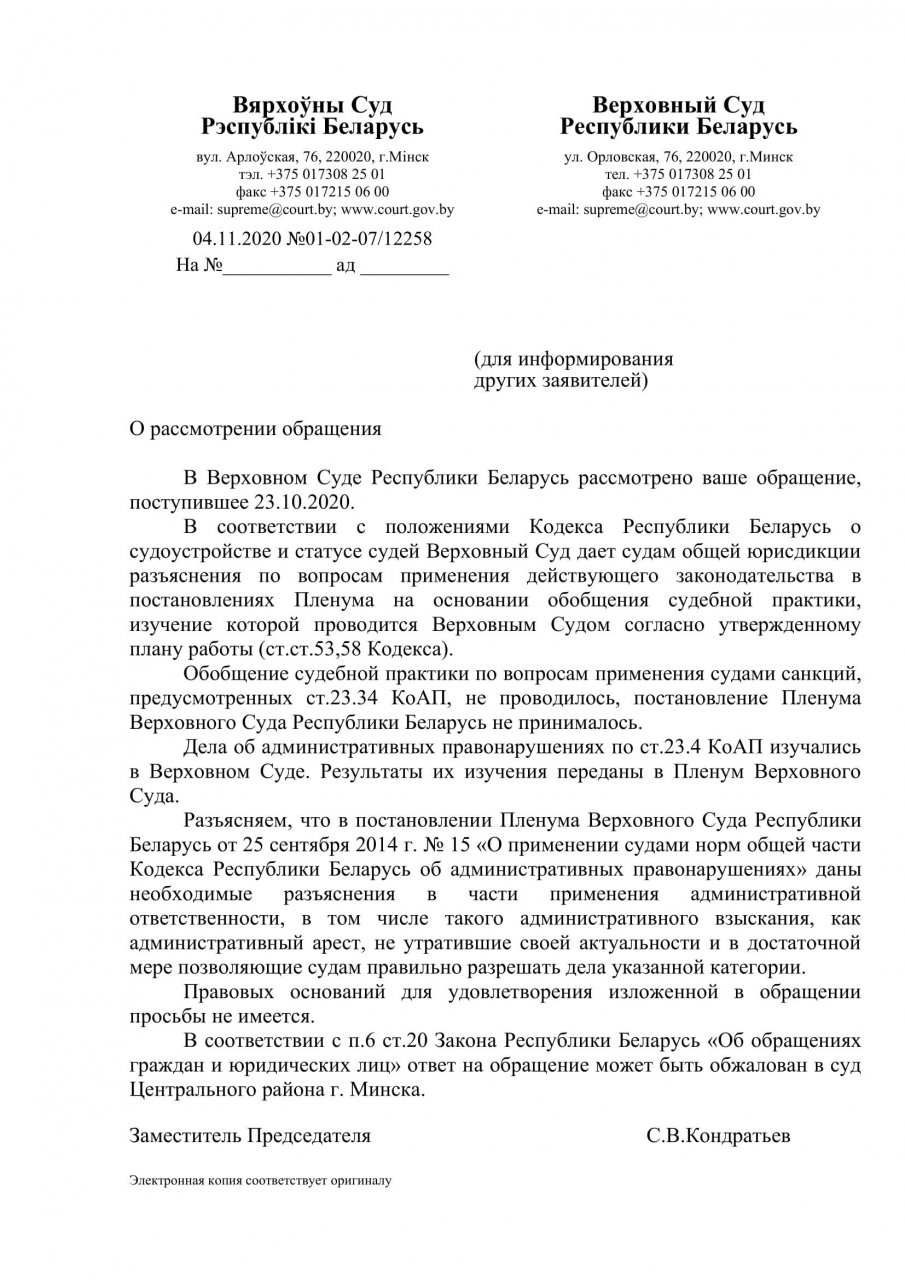 С августа 2020 г. наиболее острыми в правоприменительной практике стоят вопросы о соблюдении процессуальных норм в рамках ведения административного процесса и единообразия применения судами норм об административной ответственности по ст. 23.34, 23.4. Кодекса Республики Беларусь об административных правонарушениях (далее - КоАП ). Так проведенный анализ вынесенных решений за период с 01.01.2020 по 01.10.2020 показал отсутствие единообразия в применении санкций по вышеобозначенным статьям: как в региональном разрезе, так и во временном интервале, что свидетельствует о конъюнктурности выносимых решений в ряде регионов.