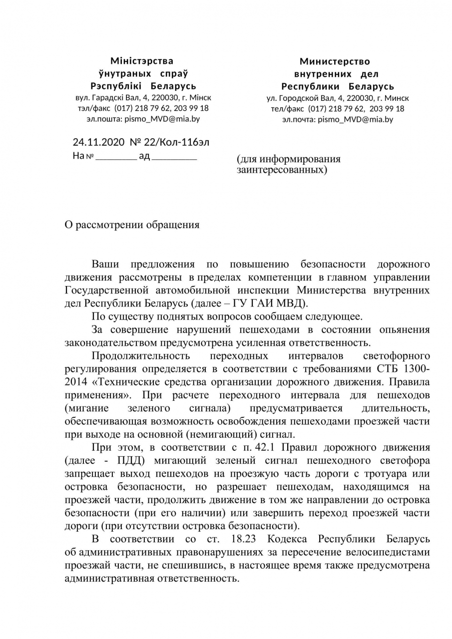 В настоящее время, в Республике Беларусь, по нашим наблюдениям, складывается патовая ситуация на дорогах. На магистрали, предназначенные для быстрого и комфортного передвижения автотранспорта, спокойно выходят пешеходы, пренебрегающие своей безопасностью, безопасностью своих близких (в том числе, детей), а также здоровьем и имуществом автовладельцев.