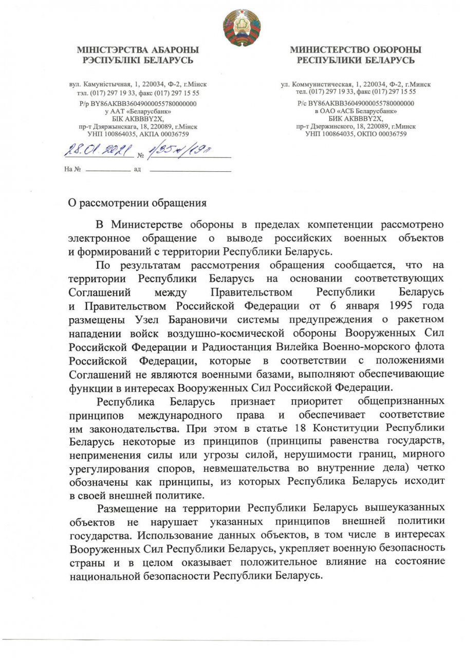 Неоднократно заявлялось, что данные объекты созданы для защиты «союзного государства». Но в Конституции нашей страны нет ни одного «союзного государства». Статья 3 Конституции гласит, что единственным источником государственной власти и носителем суверенитета в Республике Беларусь является народ.
