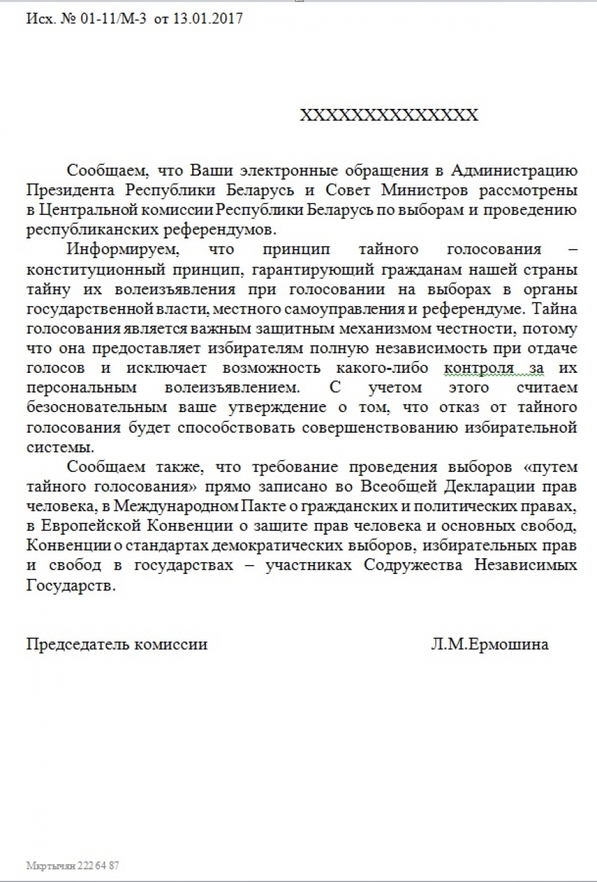 Требование проведения выборов «путем тайного голосования» прямо предусмотрено международными актами, а также является конституционным принципом Республики Беларусь