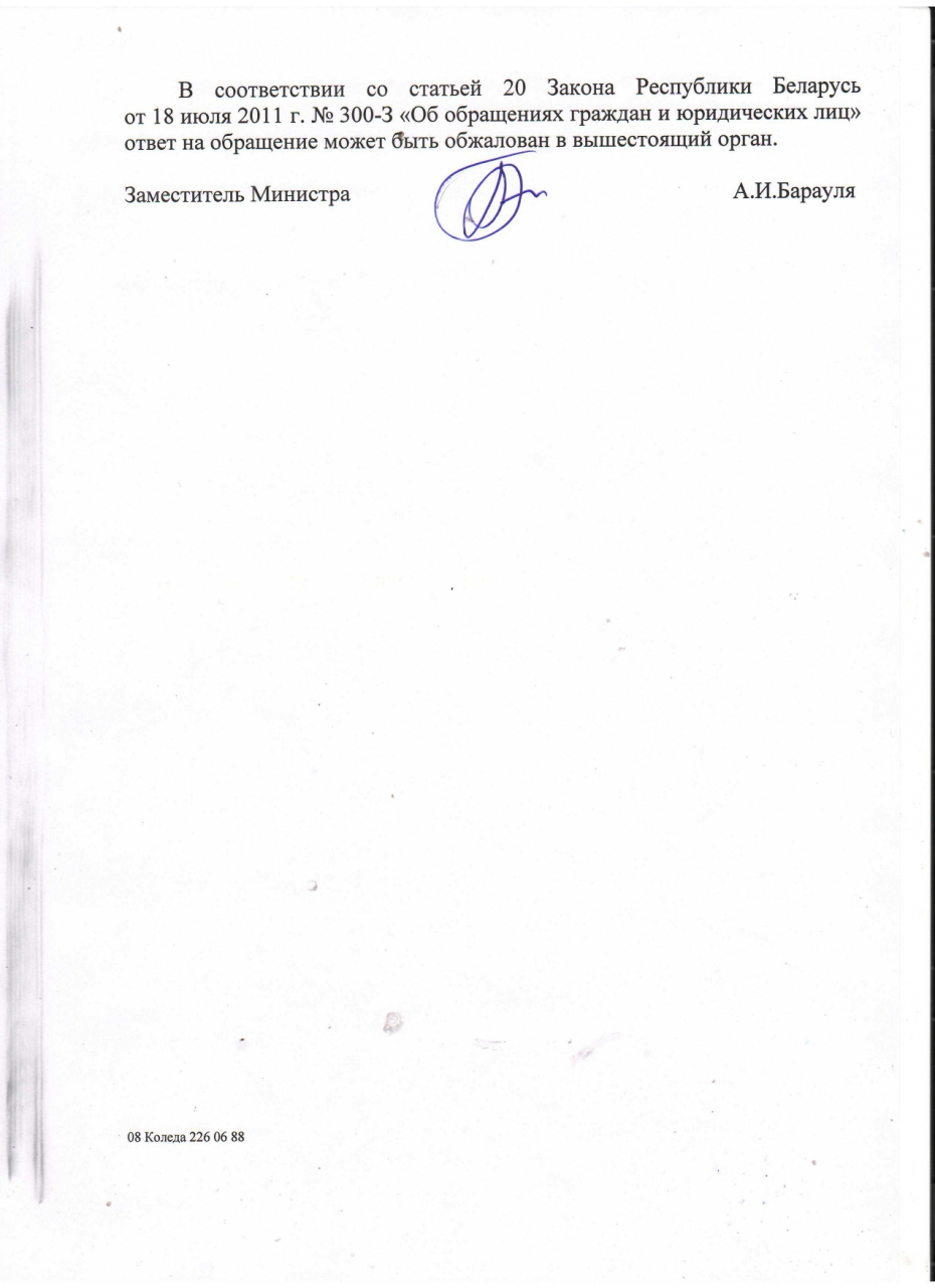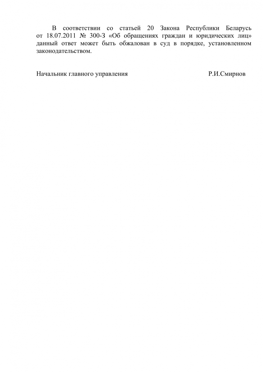 В случае неудовлетворительного ответа мы будем обращаться далее за соблюдением своих прав и интересов, гарантированных нам Конституцией Республики Беларусь.