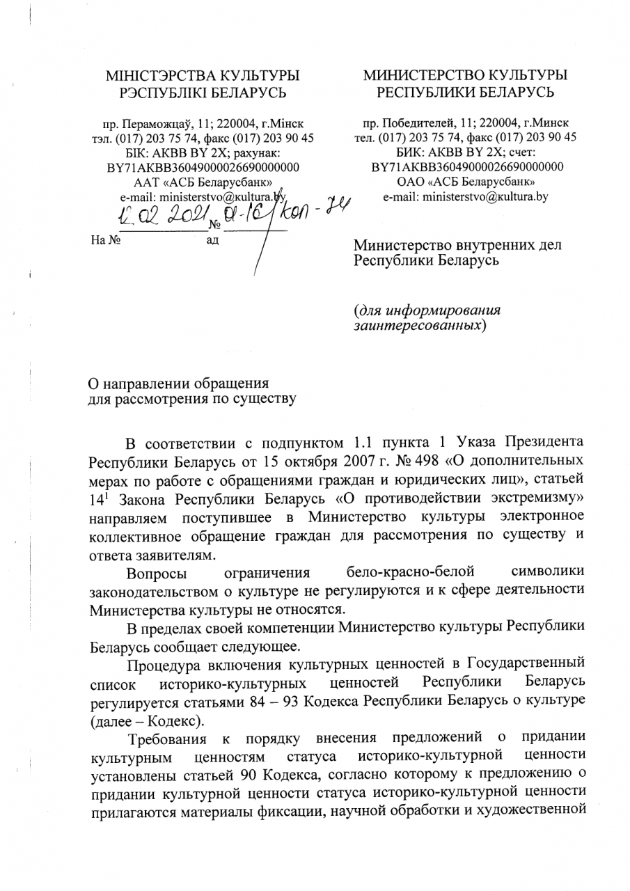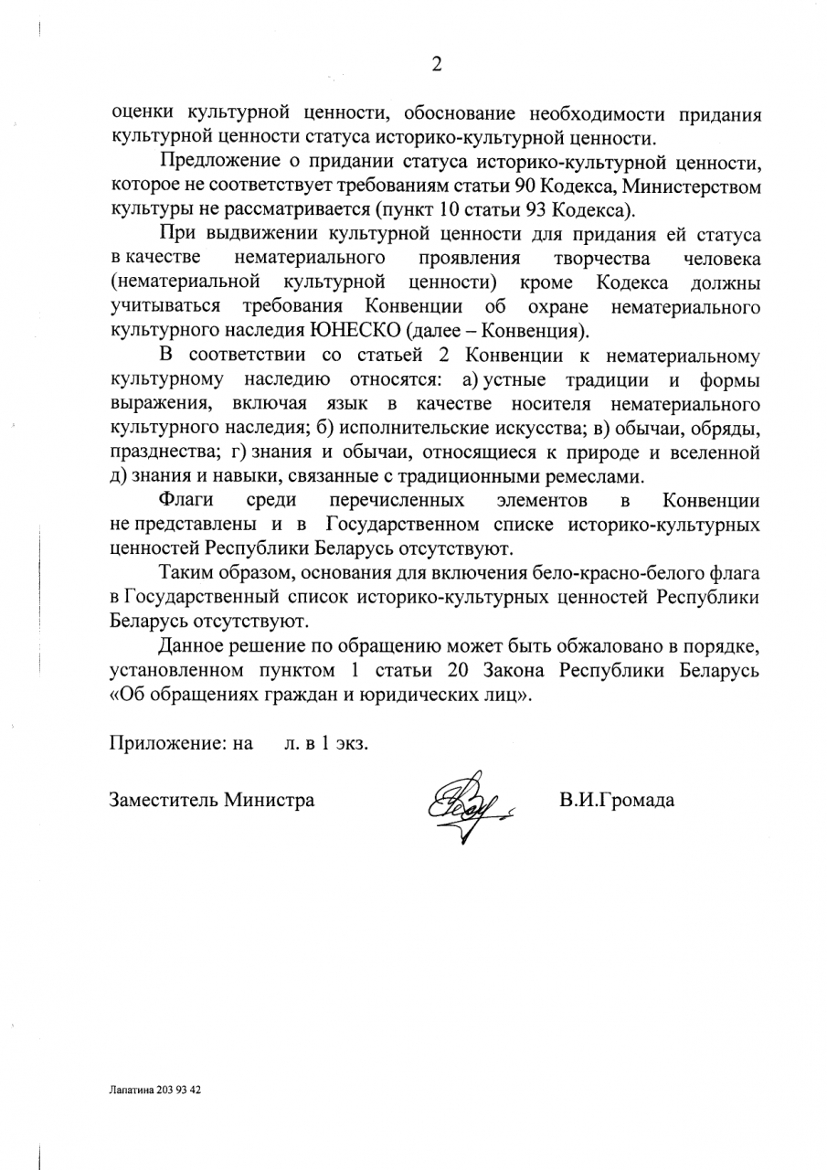 1. прекращении преследования беларусов за использование символики, которая представляет собой нематериальную культурную ценность