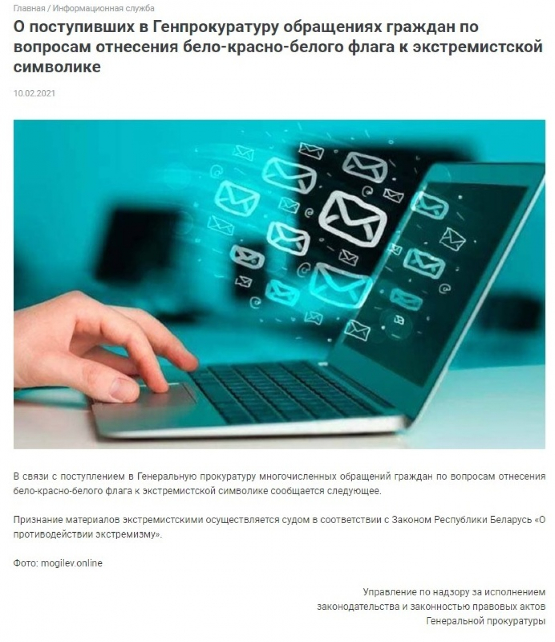 Больш за сотню беларусаў звярнуліся ў Генеральную пракуратуру з просьбай забараніць бел-чырвона-белую сімволіку. На падставе гэтага Генпракуратура рыхтуе дакументы для абвяшчэння сцяга і іншай сімволікі ў бела-чырвоных колерах экстрэмісцкай.