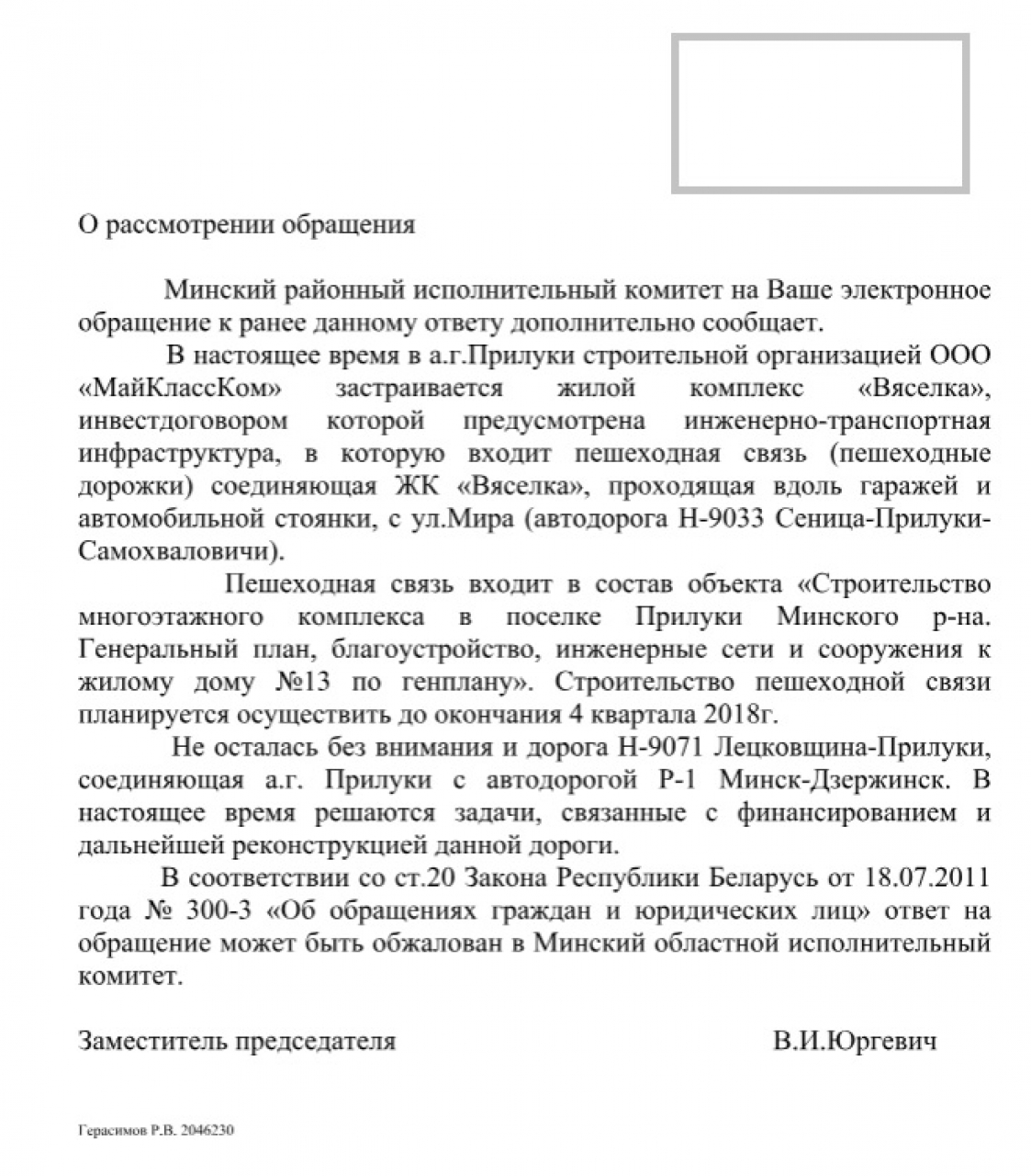 Жители ЖК Вяселка, находящегося в аг Прилуки (Минский район), обращаются для разрешения следующих вопросов:
